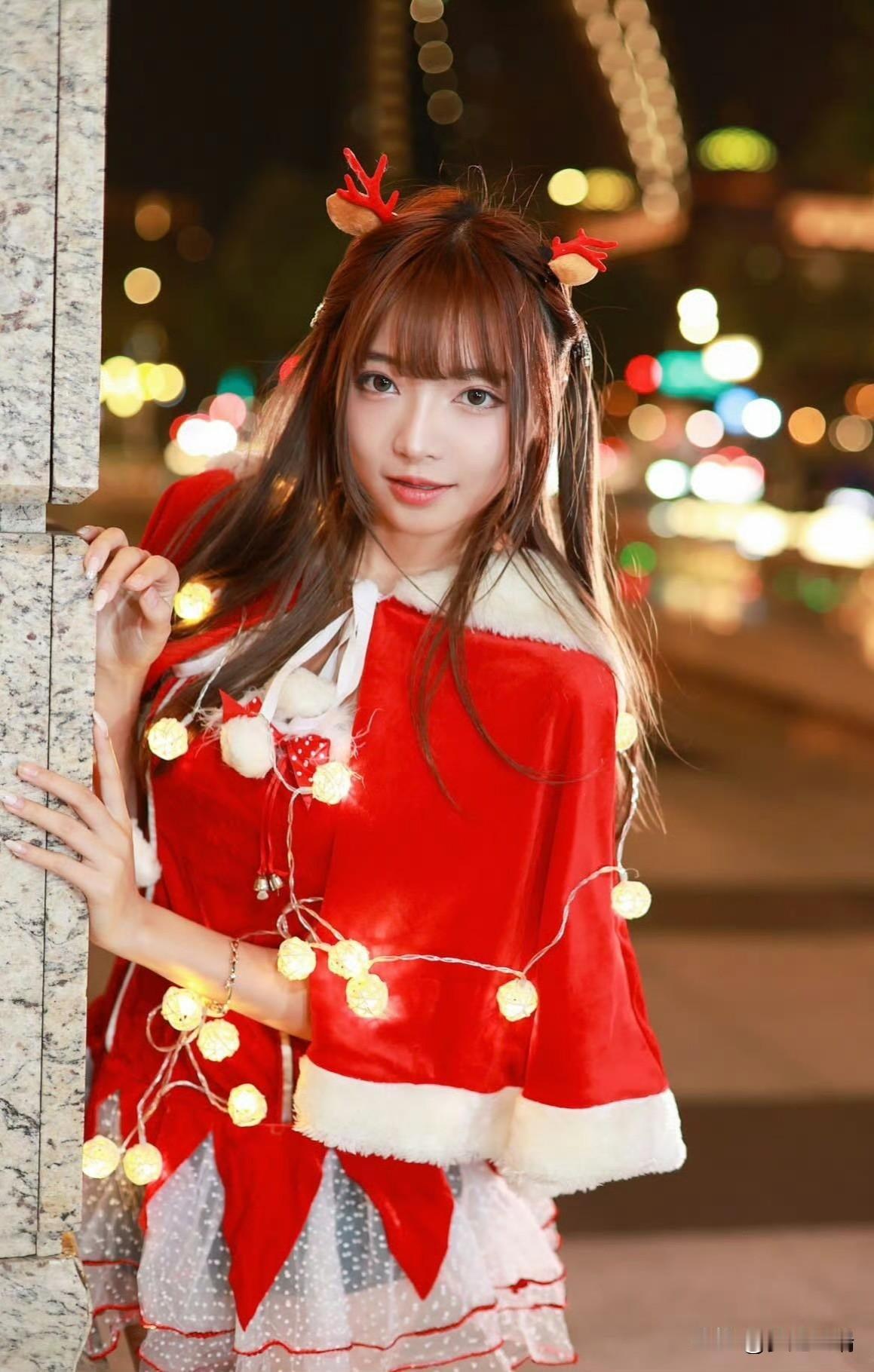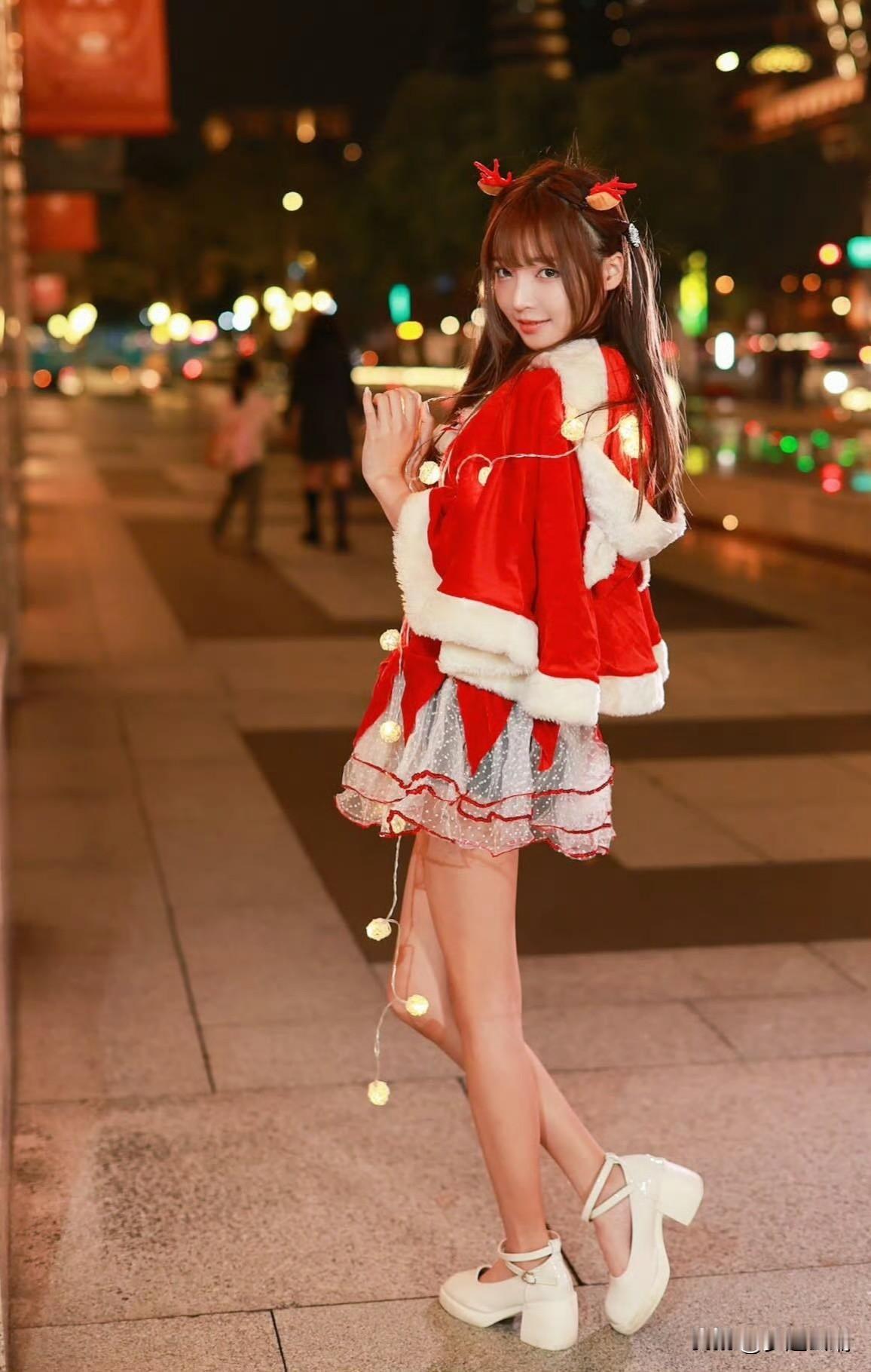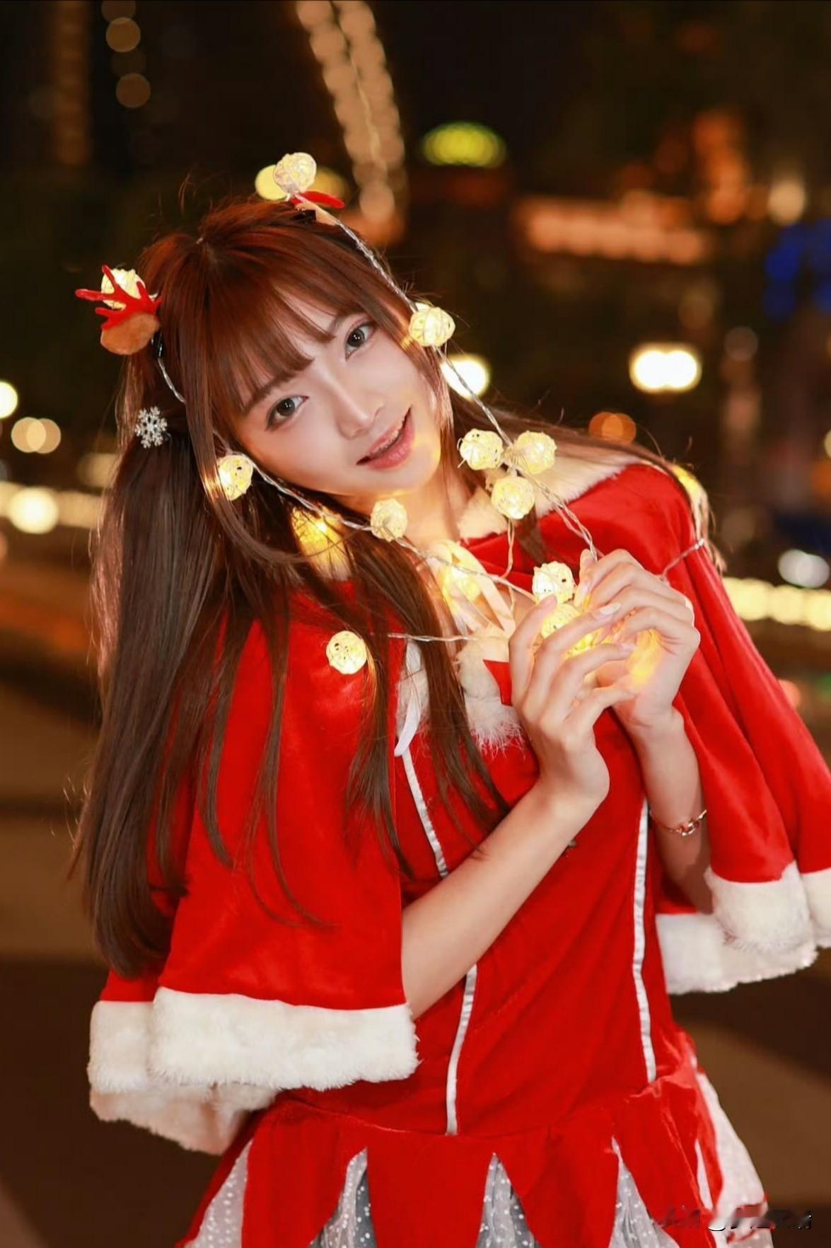 圣诞氛围满满,甜美少女与节日灯饰的完美结合!🎄✨