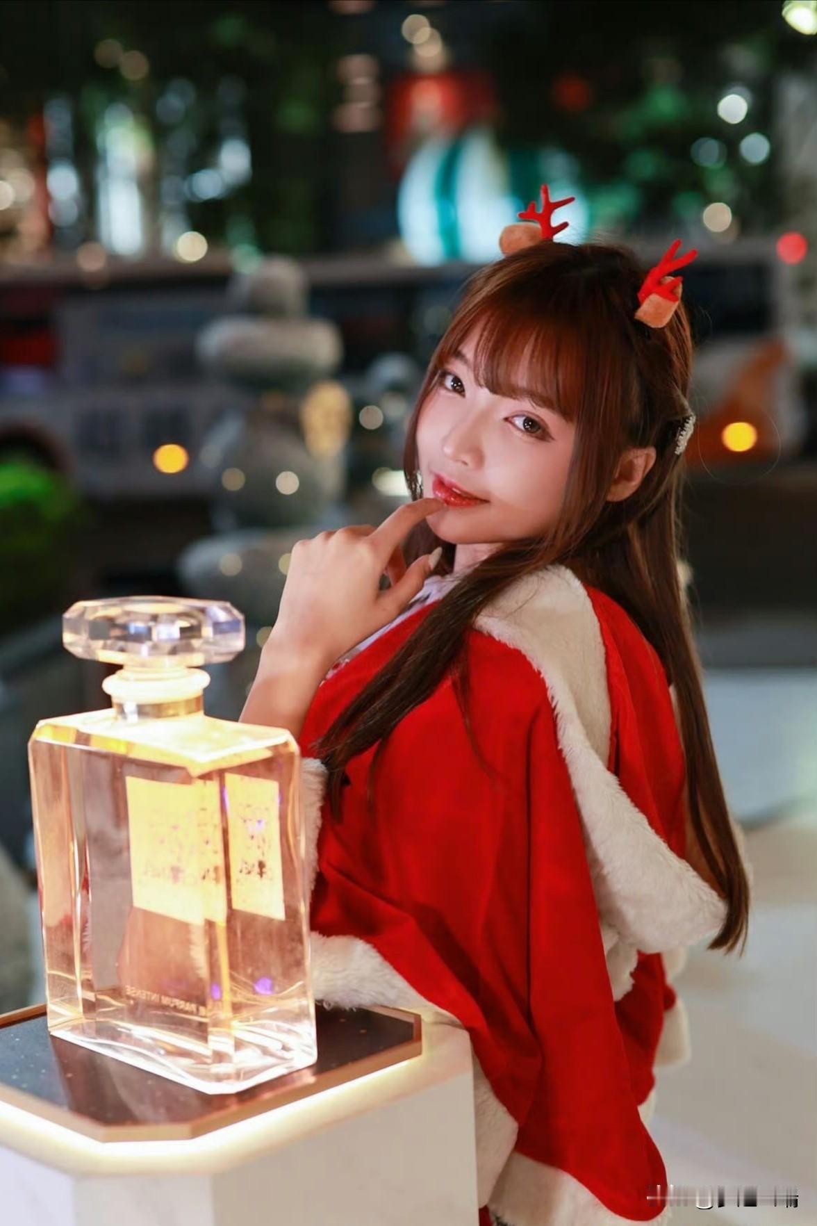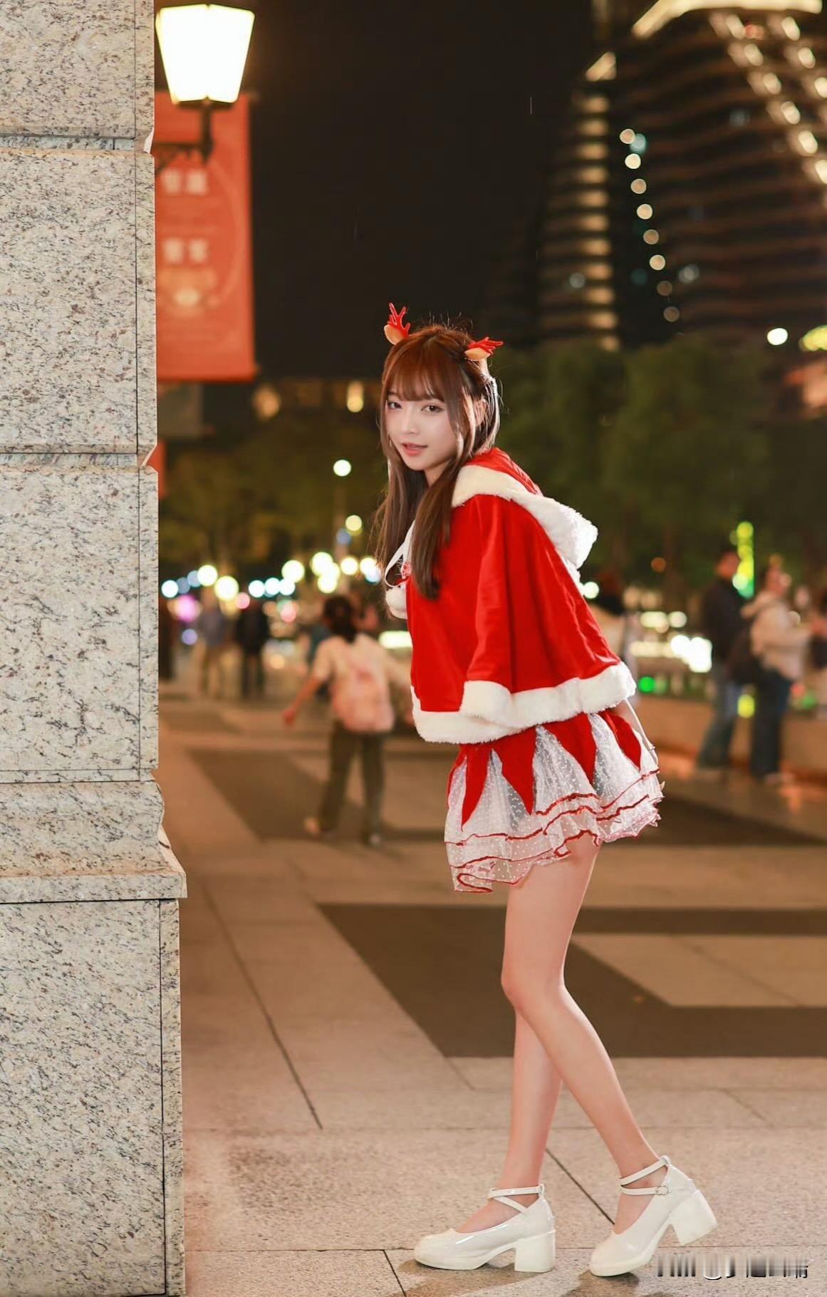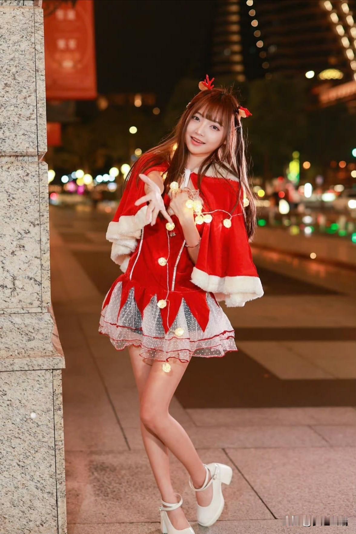圣诞氛围满满,甜美少女与节日灯饰的完美结合!🎄✨