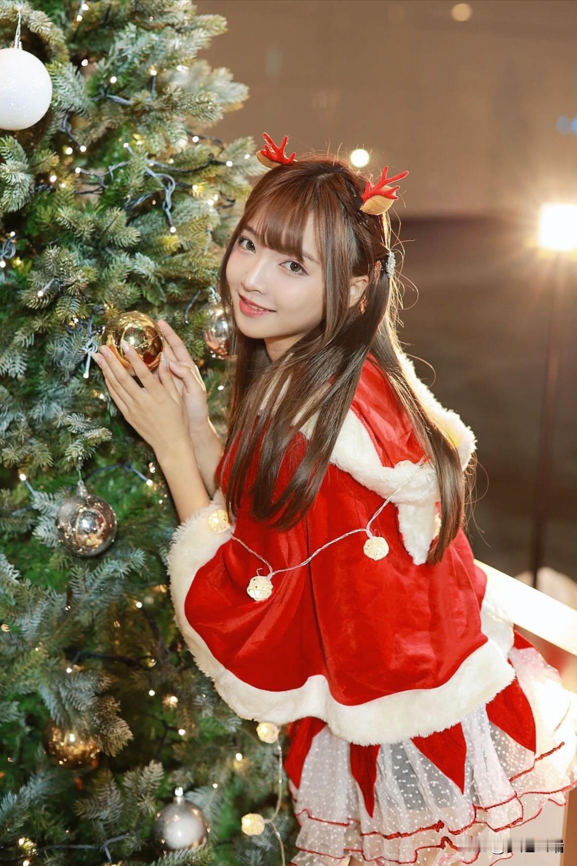 圣诞氛围满满,白色穿搭与圣诞树相得益彰,甜美又温馨!🎄💕