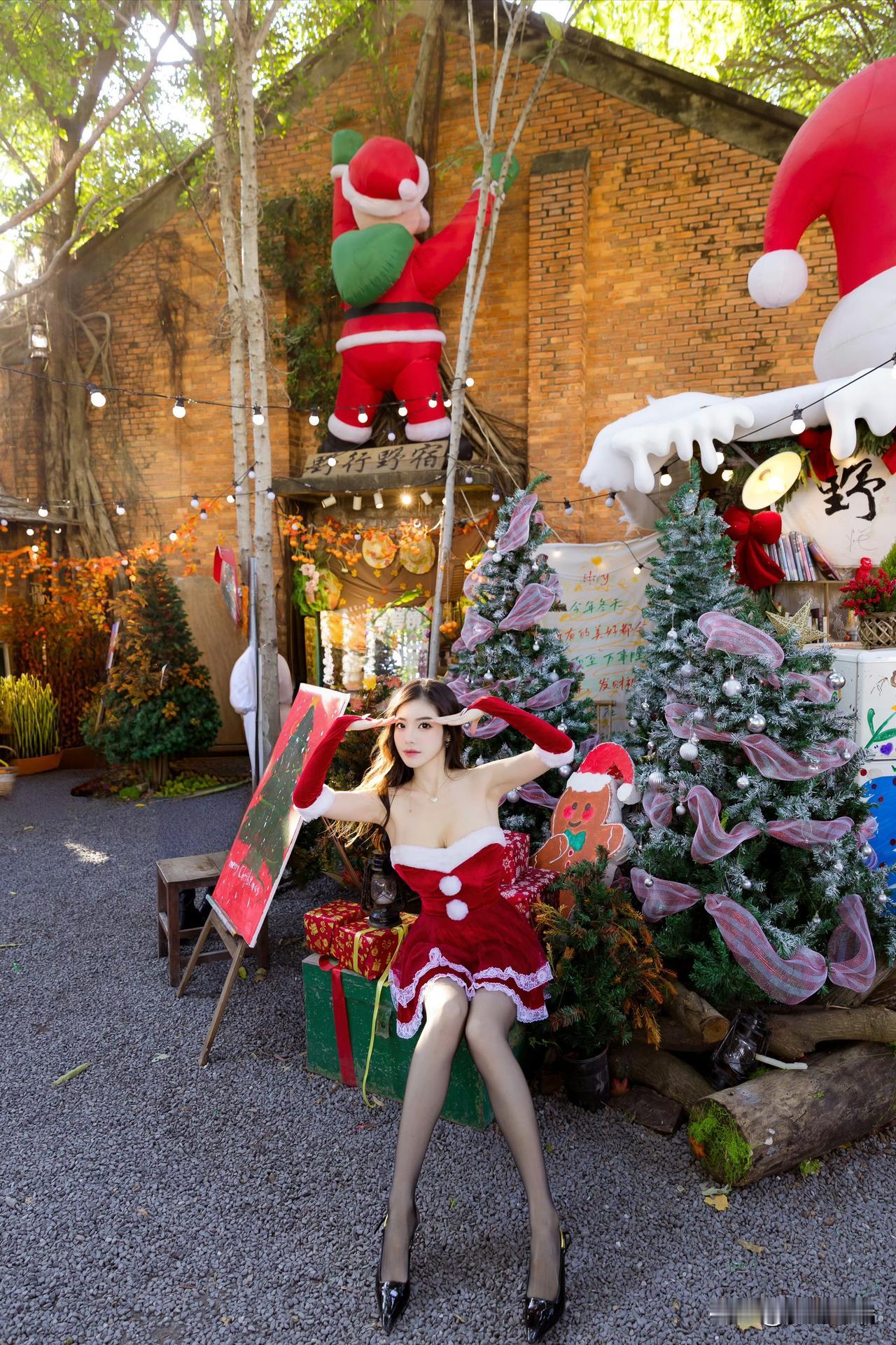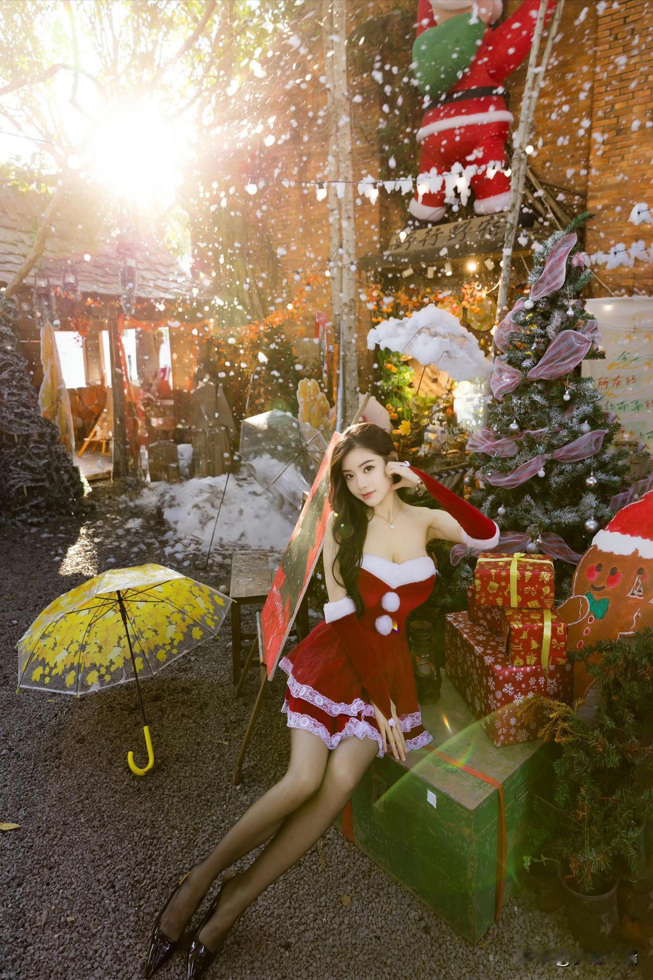冬日暖阳下,圣诞少女与礼物相伴,梦幻氛围满满!🎄💖