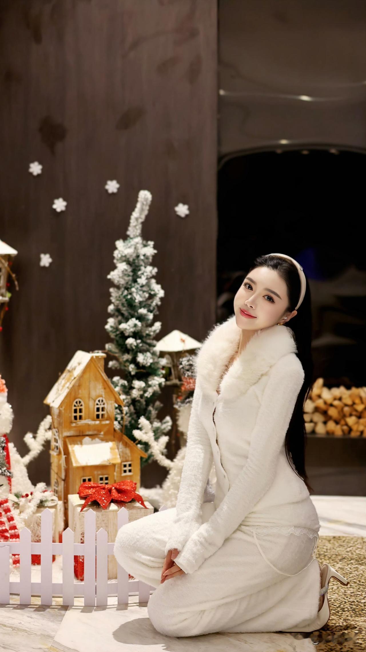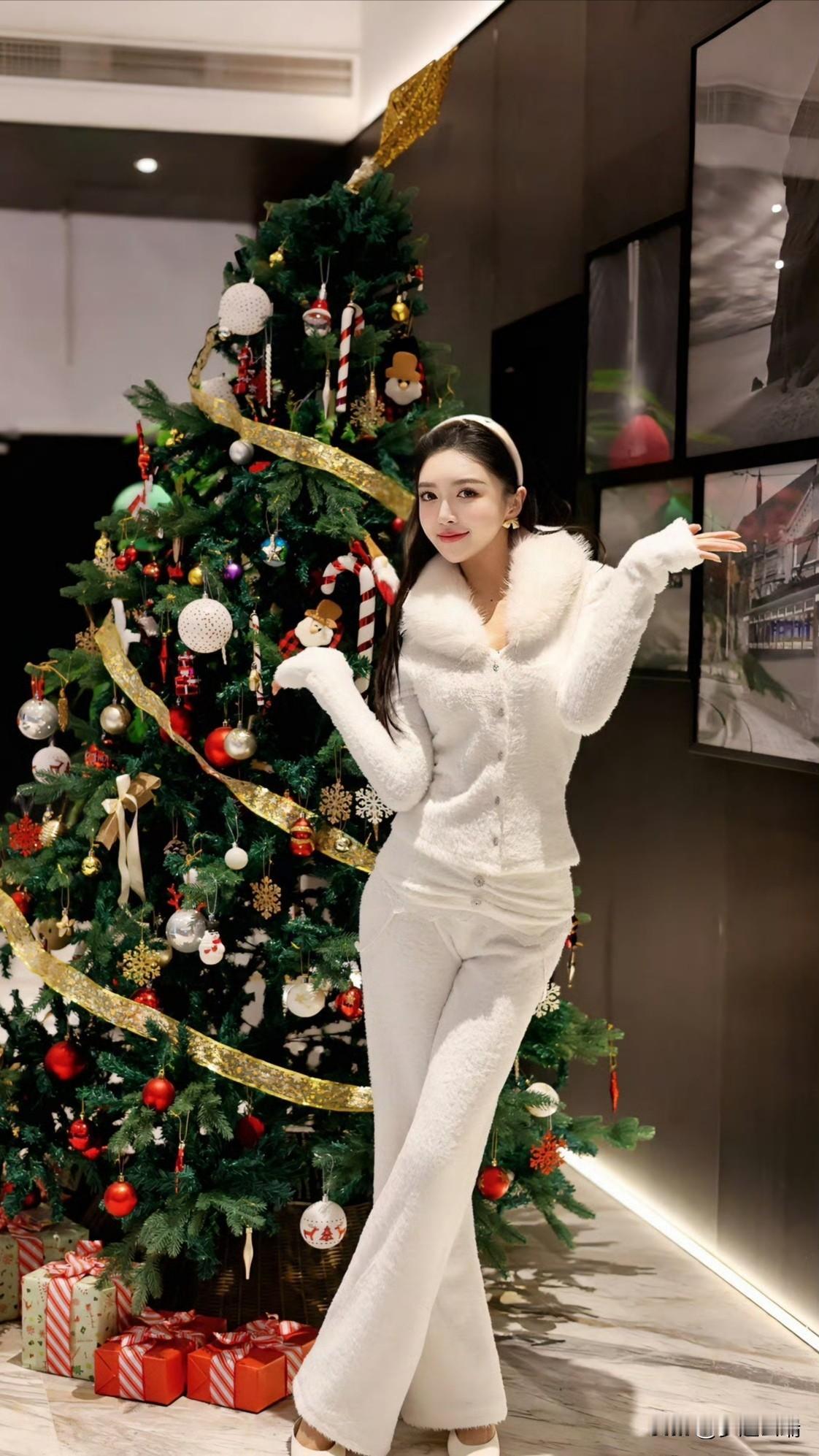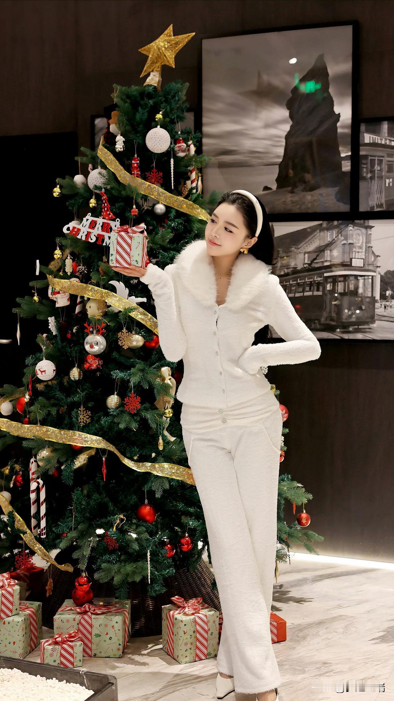 圣诞氛围满满,白色穿搭与圣诞树相得益彰,甜美又温馨!🎄💕