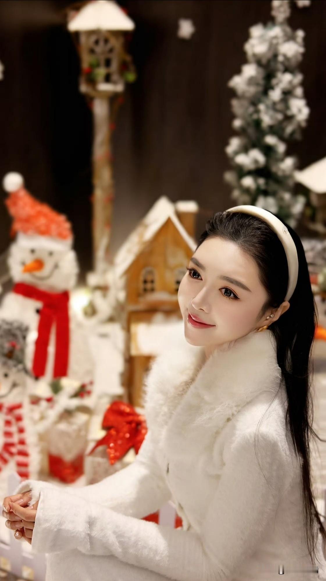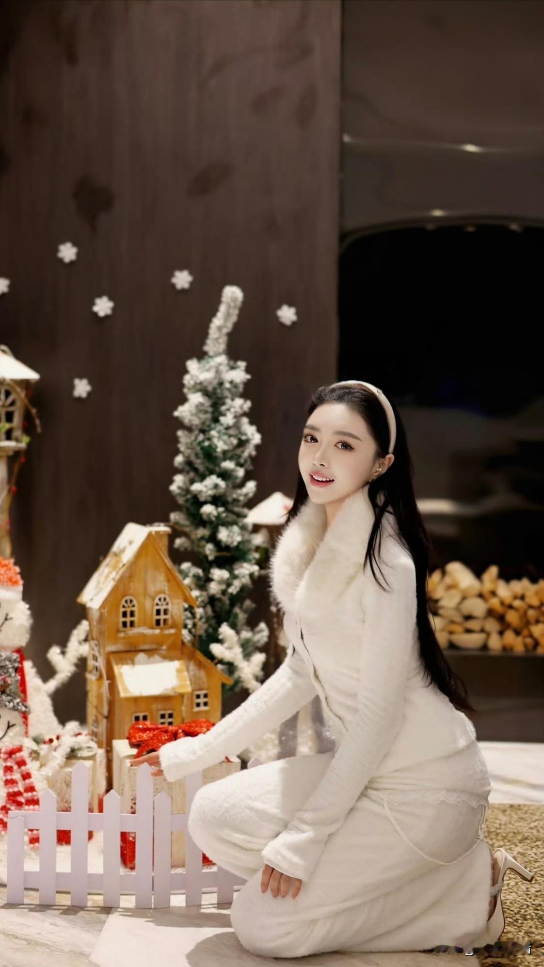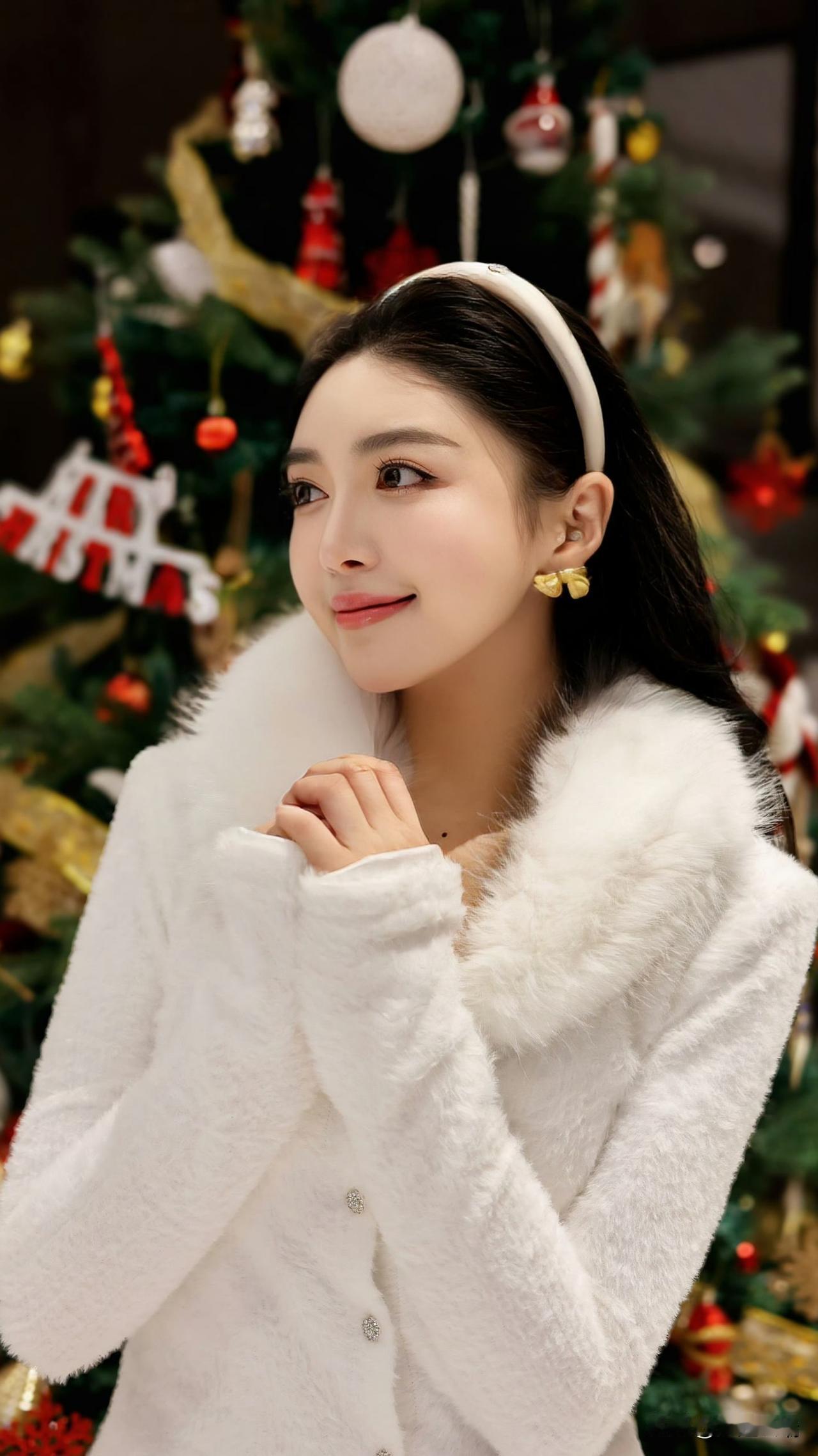 圣诞氛围满满,白色穿搭与圣诞树相得益彰,甜美又温馨!🎄💕