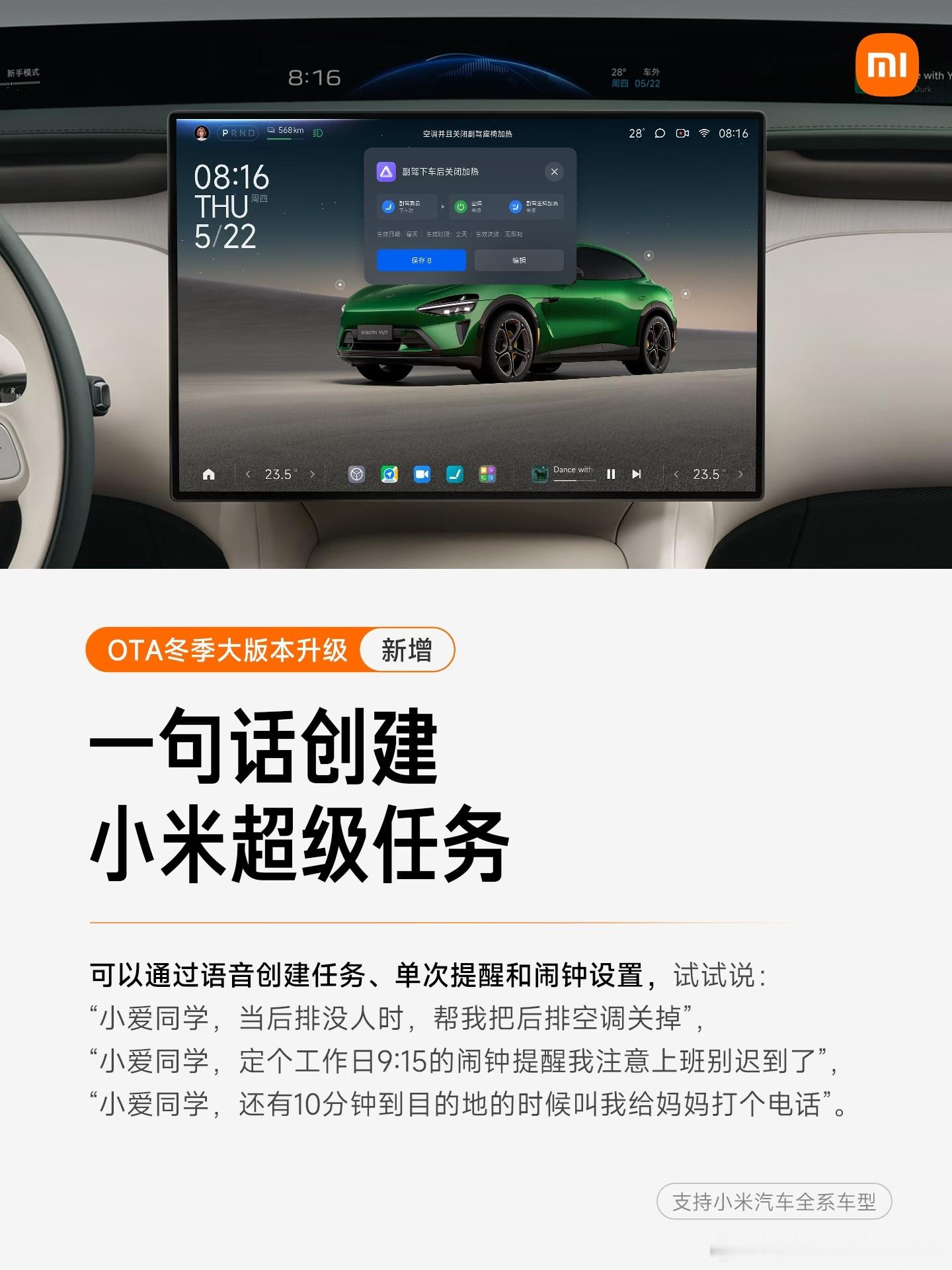 小米开启了新一轮的OTA~ OTA频率还是很高,不知道出了新型车辆后能不能保持这样的更新频次本次OTA智驾能力和座舱功能也有了一定程度的升级,但不知道最终效果如何,有空去试试