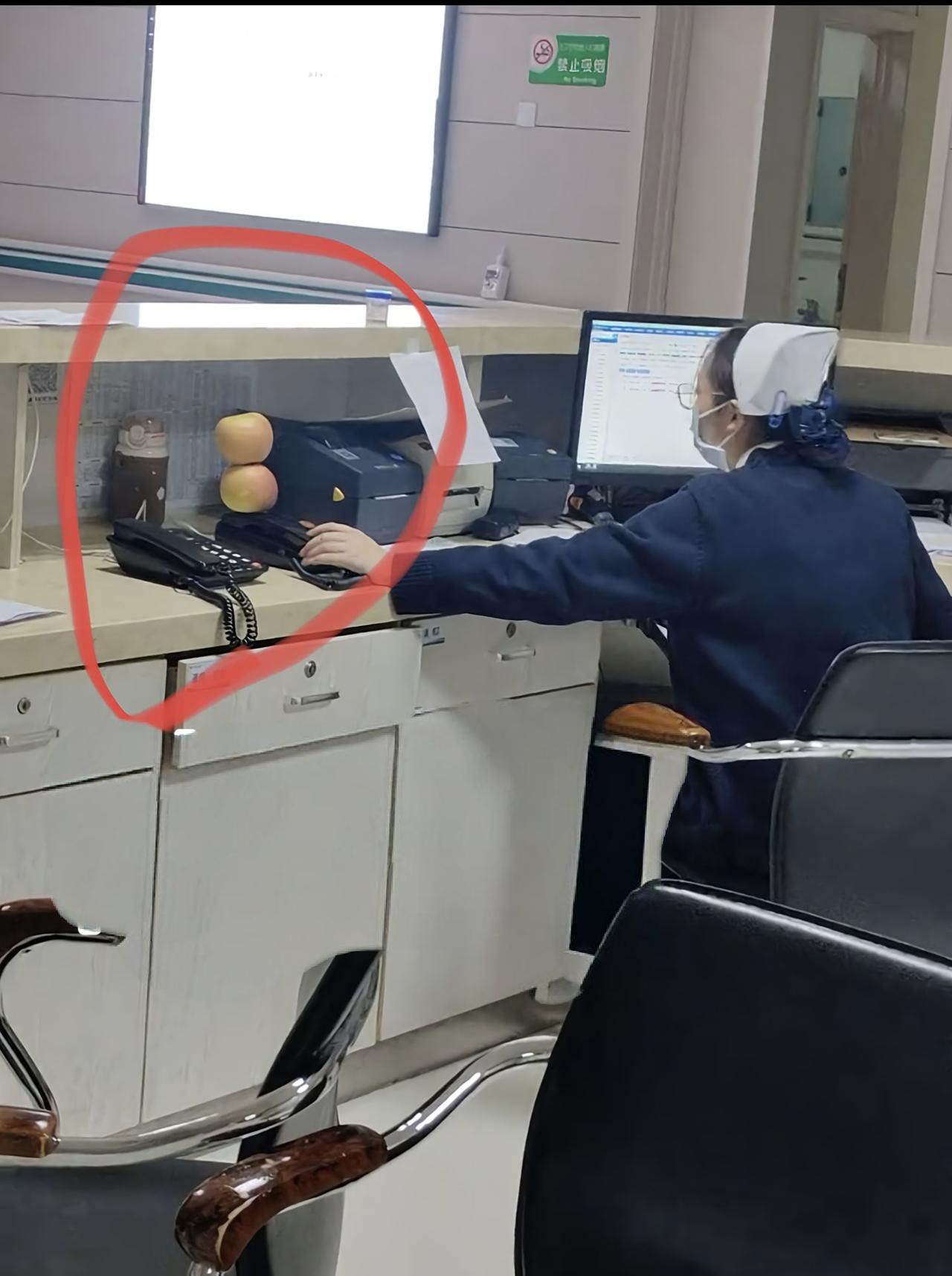 家人们说说看,医院护士站摆苹果是啥讲究?我蹲个答案~