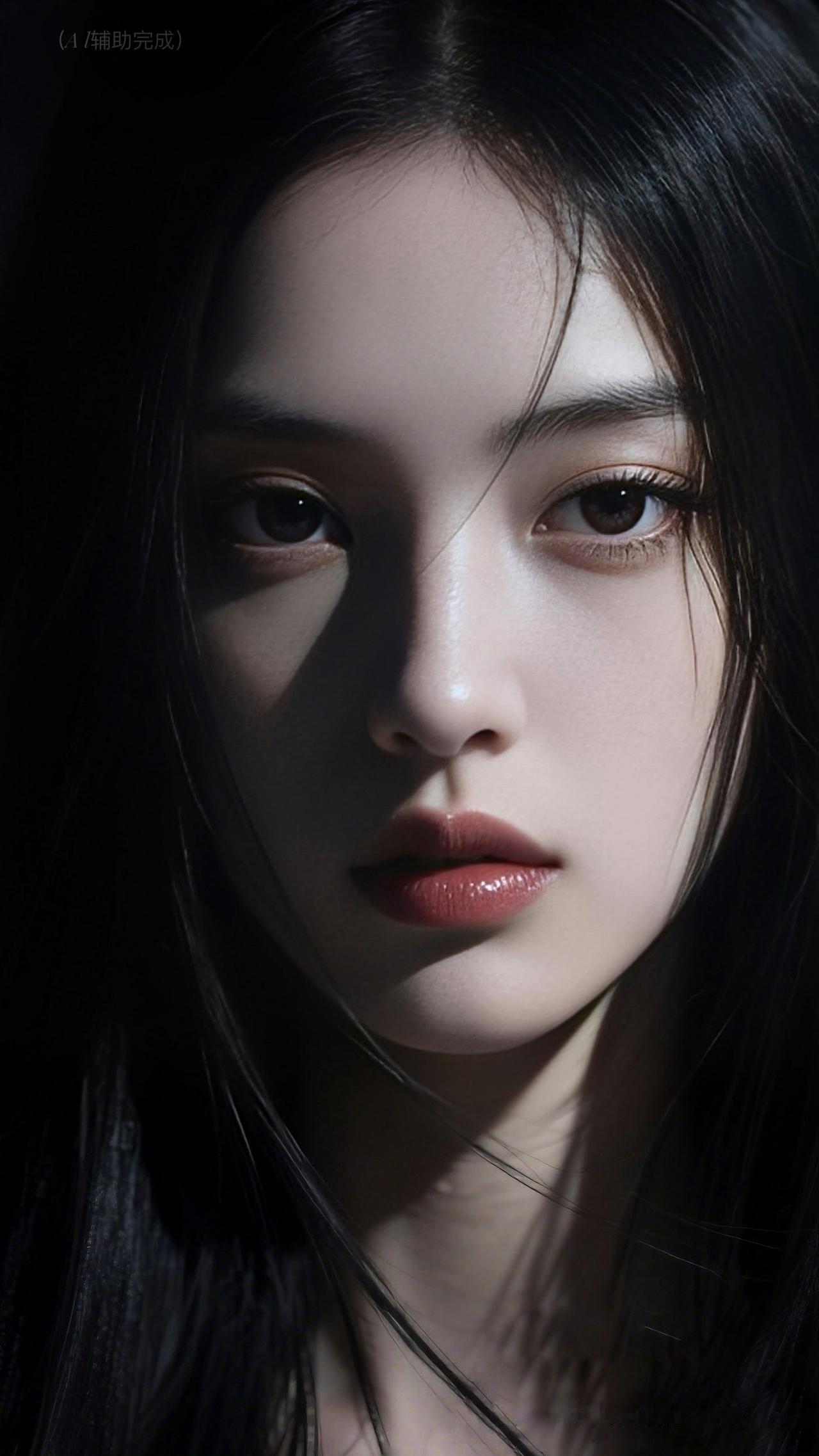 墨发如瀑倾泻,光影为瓷肌裁出明暗层次;眉眼锁着星夜幽秘,唇间漾开柔雾绯色。冷艳与温婉在她身上共生,东方意境于眉梢眼角流淌,每一寸都写满美学暴击,一眼沦陷这梦般的惊艳。