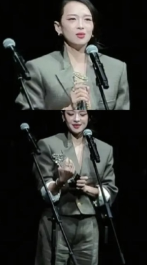 子怡在澳门电影节拿奖了! 这次她又捧回一座金莲花影后奖杯,算起来已经是第五座了。但最让人津津乐道的不是她又得奖,而是她领奖时的造型,一套皱巴巴的豆绿色西装,在一堆精心打扮的女明星中间显得特别随意。 有网友开玩笑说“别人都是来走红毯的,章子怡像是来开会的”。但就是这么“不讲究”的样子,最后还是拿了奖,这大概就是实力派的底气吧。毕竟之前她已经拿过三次影后,还拿过最佳导演奖,金莲花都快成她家后花园了。 有人说她老去金莲花是不是蹭热度,其实人家就是入围次数多、拿奖多,自然曝光率就高了。而且这个奖不仅有奖杯,还有奖金,荣誉和实惠都有了,换谁不愿意去呢?章子怡用实力证明,真正的咖位,不需要靠华服来撑。
