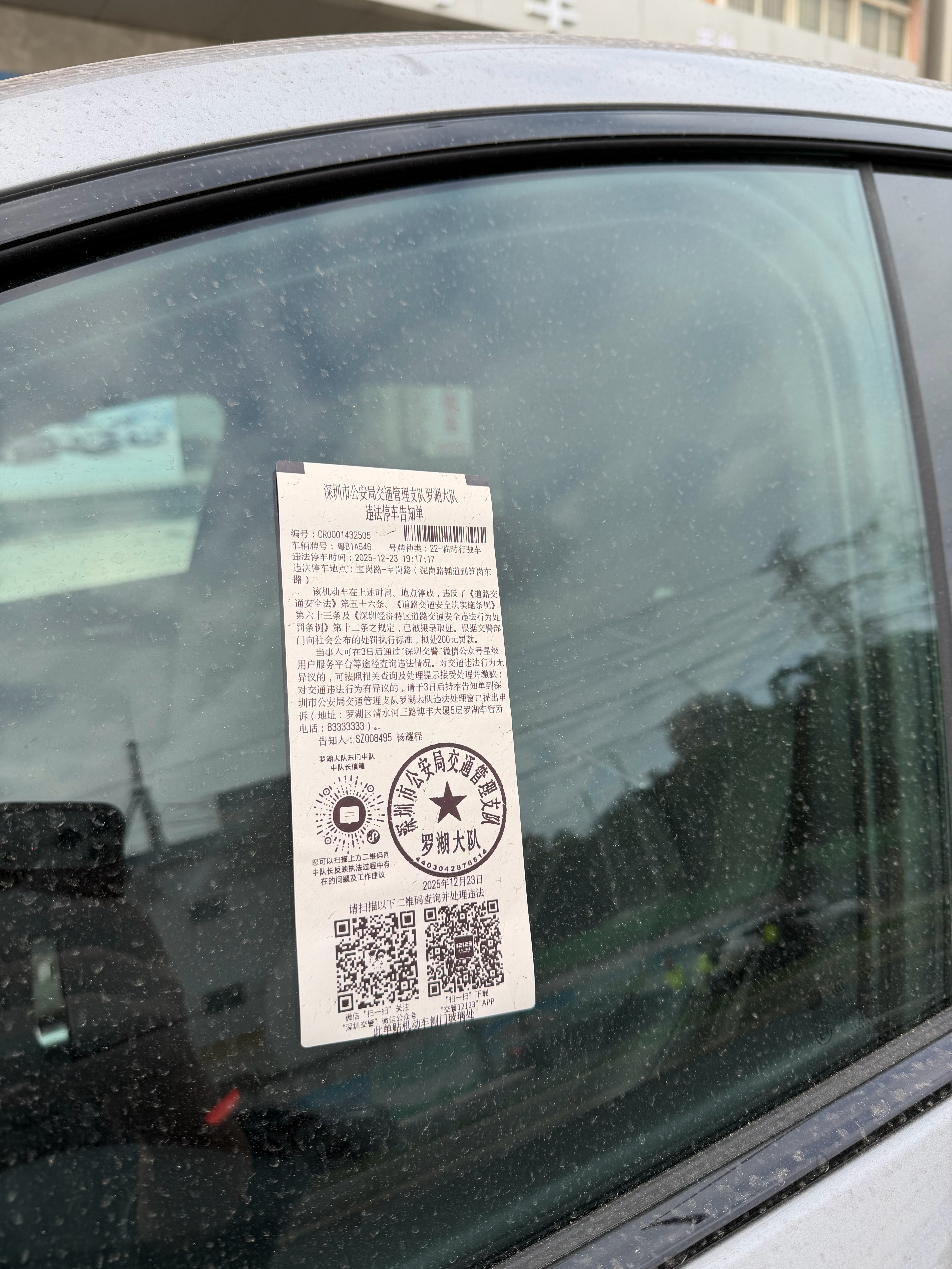 之前谁说临时牌违停不会被罚款的,你瞅瞅 深圳·红岗公园