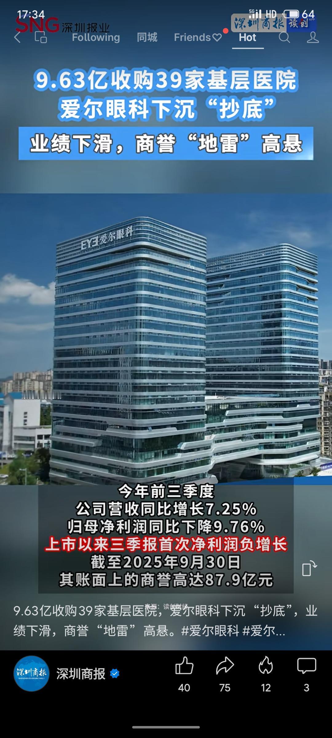 爱尔眼科宣布以9.63亿元收购39家基层医院,被市场解读为“抄底”动作。此举旨在应对业绩下滑,但其高达87.9亿元的商誉也使其面临“地雷”高悬的风险。