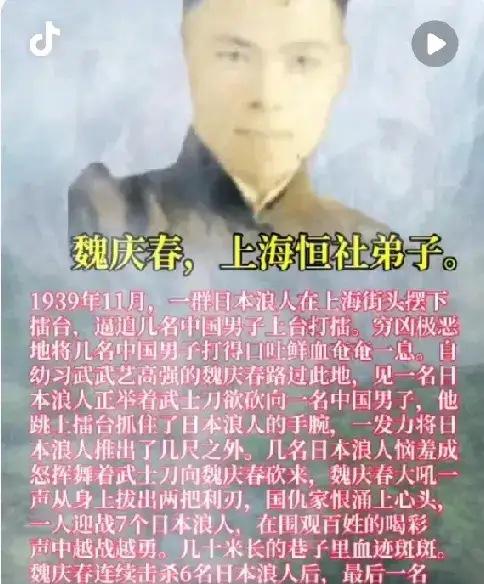 1939年上海街头,亲眼目睹同胞被辱,恒社弟子魏庆春提刀便上擂台! 那时候的上海,早没了昔日繁华。日军铁蹄踏碎街巷,租界成了孤岛,而街头的日本浪人比正规军更让人胆寒。 这群被明治维新抛弃的武士,在日本混不下去,就跑到中国土地上作威作福,仗着背后日军撑腰,抢东西、辱同胞成了家常便饭。官府不敢管,租界不愿管,街头的沉默早成了常态,没人敢出头,连呵斥都带着怯懦。 那擂台就搭在南京路的空地上,几块破烂木板拼拼凑凑,旁边插着沾了尘土的日本国旗,三个浪人光着膀子,胸口刺着狰狞的樱花纹,正围着一个卖报老人拳打脚踢。老人的报纸散了一地,被他们用皮靴踩得稀烂,其中一个浪人还揪着老人的辫子,把他的头往木板上撞,嘴里“支那人、贱种”的骂声,像针一样扎在围观者心上。 没人敢上前。有人别过脸去抹泪,有人攥紧拳头却不敢松开,连孩子都被家长捂住嘴,哭声憋在喉咙里,闷闷的疼。就在这时,“哐当”一声,魏庆春把手里的糕点纸包摔在地上,桂花糕滚了一地,他弯腰抄起旁边小吃摊的菜刀,刀身生锈却闪着冷光,一步步走向擂台,每一步都踩得坚定,皮鞋碾过散落的报纸,发出沙沙的响。 “住手!”他的声音不算洪亮,却像惊雷炸在死寂的街头。浪人们停了手,回头看到穿着长衫、面容清秀的魏庆春,顿时哄笑起来,领头的浪人叫佐藤,拔出腰间的短刀,刀尖指着魏庆春:“小支那,想找死?” 魏庆春没答话,只是先扶起地上的老人,帮他拍掉身上的尘土,又捡起几张没被踩烂的报纸叠好递给他。做完这一切,他才转身面对佐藤,握紧了菜刀:“要么滚出中国土地,要么,我废了你这作恶的手!” 恒社弟子大多练过武术,魏庆春自小跟着师父学形意拳,虽不是顶尖高手,却有一身正气和不怕死的狠劲。佐藤挥刀就砍过来,刀风带着腥气,魏庆春侧身躲开,顺势一脚踹在佐藤膝盖上,佐藤疼得单膝跪地,围观的人群里终于爆发出一声低低的喝彩。 可另外两个浪人立刻围了上来,三打一的局面,魏庆春渐渐落了下风。左胳膊被划了一道口子,鲜血浸透了长衫,他却咬着牙不松手,菜刀挥舞得更急了——他知道自己不能输,一旦输了,这些浪人只会更嚣张,同胞们只会更屈辱。 就在这时,人群里突然冲出一个年轻人,手里拿着一根扁担,朝着一个浪人的后背狠狠砸去;接着,卖报老人也举起了手里的报夹,虽然颤抖着,却还是朝着佐藤的腿打去。越来越多的人站了出来,有的抄起砖头,有的举起木棍,没人再沉默,呐喊声、怒吼声盖过了浪人的叫嚣。 魏庆春趁着浪人分神,一刀劈在佐藤的手腕上,短刀“哐当”落地。佐藤捂着流血的手腕惨叫,另外两个浪人见势不妙,想趁机逃跑,却被愤怒的人群围了起来,拳头、砖头雨点般落下,把这些平日里作威作福的浪人打得抱头鼠窜。 街头终于恢复了平静,却不再是之前的死寂。魏庆春的胳膊还在流血,却笑着扶起身边的年轻人:“早该这样了,他们再横,也怕咱们团结起来。”卖报老人递给他一块干净的布条,哽咽着说:“小伙子,谢谢你,你给咱们中国人长脸了!” 没人知道,魏庆春当晚就被恒社同门接走了。日军和租界巡捕四处搜捕他,却连他的影子都没找到——恒社虽是杜月笙创办的社团,却有不少弟子心怀家国,乱世里一直悄悄庇护同胞、传递抗日情报。魏庆春后来辗转去了重庆,加入了抗日队伍,再也没回过上海的街头。 可那段提刀上擂台的故事,却在上海的巷弄里流传开来。越来越多的人明白,沉默换不来安宁,怯懦只会助长敌人的嚣张。后来的上海街头,有人偷偷破坏日军的通讯设施,有人给抗日队伍传递情报,有人冒着风险救助被捕的同胞——魏庆春的一刀,劈开了孤岛时期的黑暗,唤醒了中国人骨子里的血性。 1939年的上海,繁华不再,尊严却从未消失。魏庆春不是什么盖世英雄,只是个普通的中国人,可他在同胞受辱时的挺身而出,恰恰印证了:民族的骨气,从不是靠少数人的呐喊,而是靠每个普通人在关键时刻的不退缩。越是黑暗的时刻,越需要有人敢站出来,哪怕只有一把生锈的菜刀,哪怕面对的是凶神恶煞的敌人。 各位读者你们怎么看?欢迎在评论区讨论。