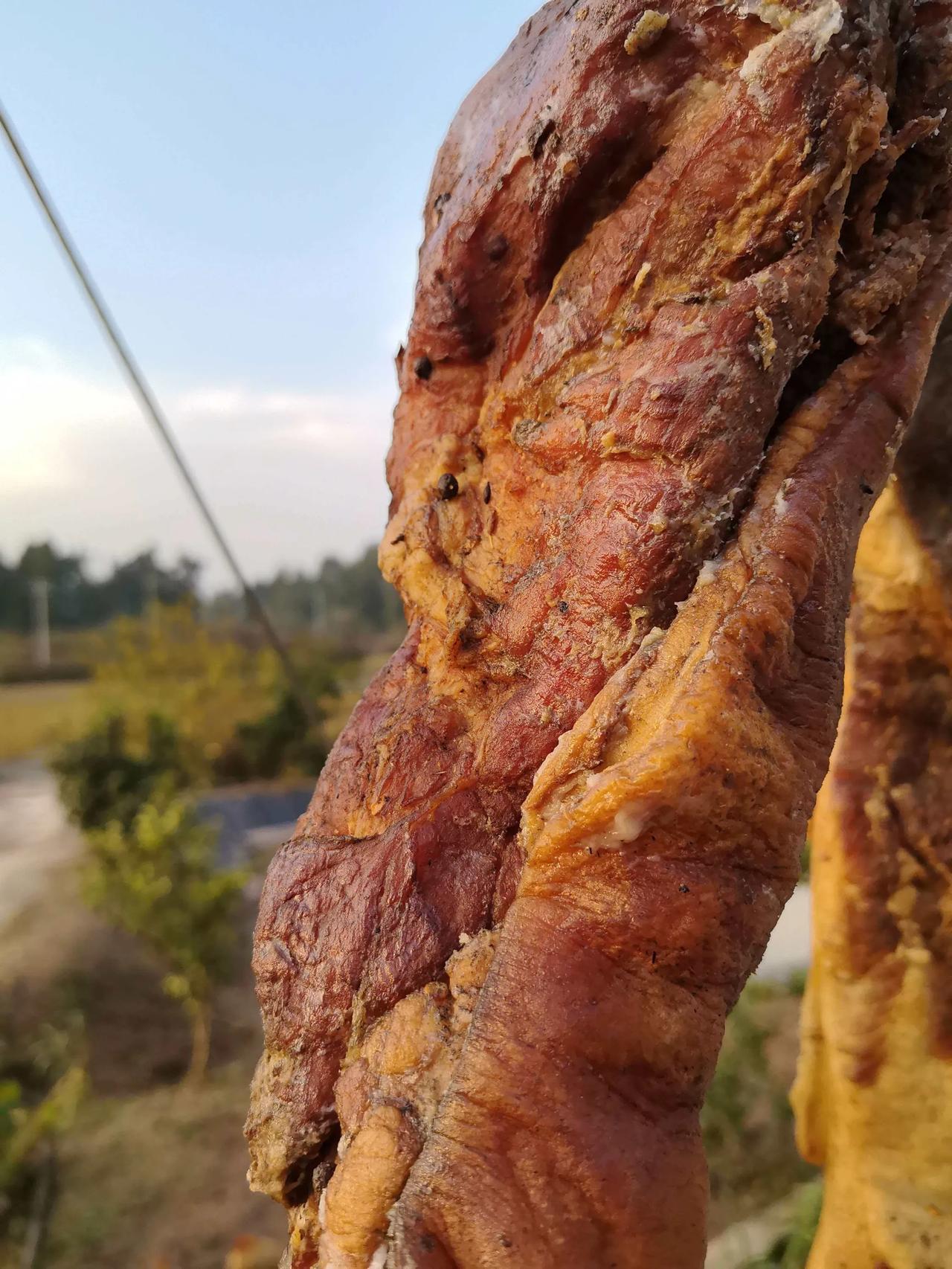 快递盒在玄关蹲成小方碑 拆开时,陈年的烟火 从真空袋里逃出来—— 腊肉的皮还泛着琥珀色的油光 香肠在案板上滚了半圈 红亮的衣膜裹着肥瘦相间的秘密 是父亲蹲在院坝里 把花椒、辣椒和岁月 一起灌进肠衣时的沉默 最软的是豆腐干 咬开的瞬间,卤香漫过舌尖 突然想起老屋后的石磨 转着转着,就把晨光 磨成了母亲手里,温温的豆香 窗外的风还带着陌生的凉 而我攥着一片腊肉 像攥着老家屋顶 那缕不肯散的炊烟 它不说话,却替故乡 轻轻拍了拍我的肩膀