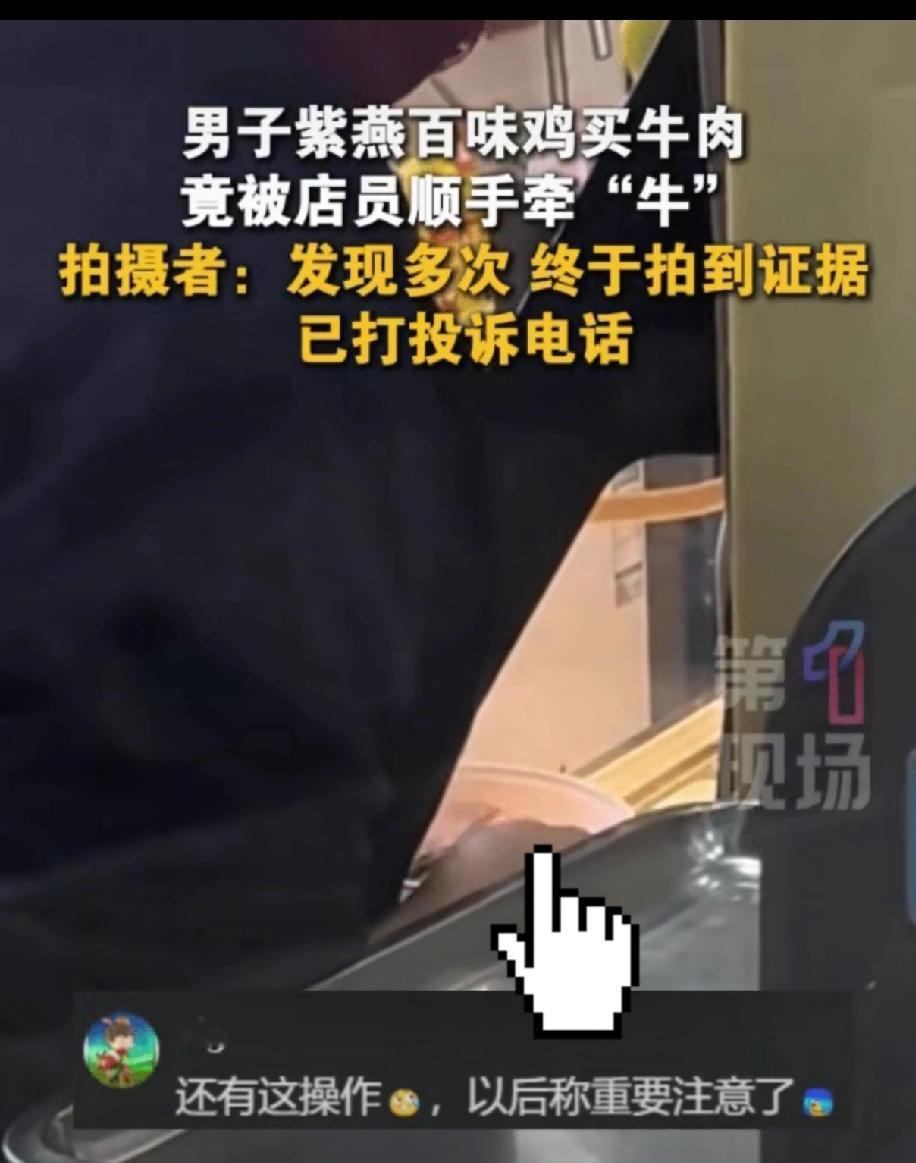这绝对是惯犯!江苏,一男子在紫燕百味买牛肉,每次买回家,都发现牛肉好像比称的时候少了很多,百思不得其解,观察了多次,他终于发现了猫腻,原来,店员每次称完牛肉的时候,都趁顾客不注意的时候,偷偷拿出来几片。 这种“称重后偷肉”的操作哪是小动作,分明是把消费者当冤大头,而且看店员手法娴熟,绝对不是第一次干。更气人的是网友吐槽的夫妻肺片“肉少拌料多”,本质都是用小聪明透支品牌信誉。 别觉得几片肉不起眼,这已经涉嫌缺斤短两,按规定最高能罚3万,门店停业整改也是活该。商家总以为顾客懒得计较,却忘了信任一旦碎了就难重建,与其玩这些猫腻,不如明码实价来得长久。 消费者多留个心眼是应该的,但更该靠监管和商家自律守住底线。你买卤味时遇到过分量“缩水”的情况吗?