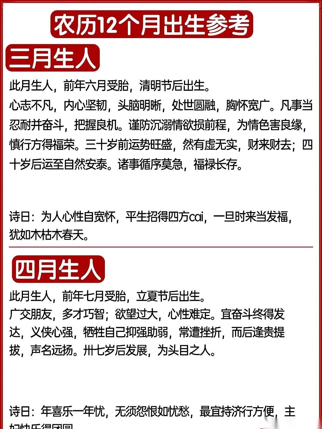 老辈人说,你是哪个季节生的,就带了哪个季节的命。 这话,我以前不信。 后来见的人多了,发现真有点意思。开春、入夏那会儿出生的人,好像身上都安了个小马达,拦不住地往外跑,浑身都是使不完的劲儿,人来疯,爱热闹。 我身边就有这么个活宝,春天生的,特长就是发现“犄角旮旯”里新开的馆子,周末不把他拽出门,他能跟你急。 但你再看秋冬出生的。 嘿,那叫一个稳。天塌下来,他都得先算算从哪个角度扶最省力。你想让他冲动消费一次?比登天还难。每一步都像踩在格子里,算得清清楚楚。 但这事儿吧,千万别信死了。 它说白了,就是个出厂设置,给你预设了一个“建议模式”。 有的人,就喜欢默认配置,挺好。 但有的人偏不,非要把自己活成“自定义模式”,那才叫本事。 我就认识一个寒冬腊月里生的姑娘,按理说得是安静内敛吧?结果人家活得跟个小火炉似的,谁靠近谁暖和。 所以啊,别老琢磨自己是哪个季节的“产品”。 你是谁,不是看你什么时候来,是看你打算怎么活。