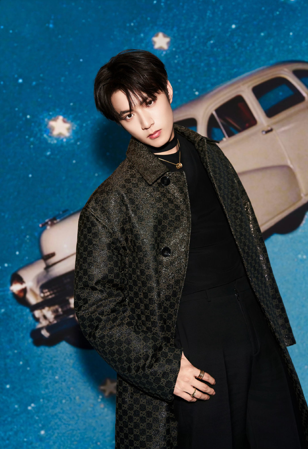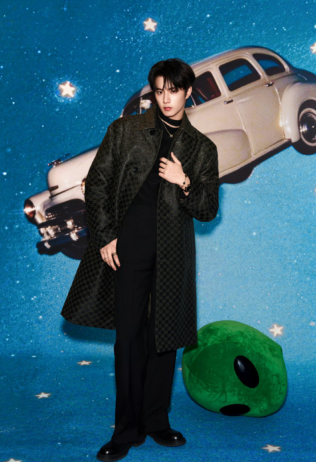 刘耀文|新综发布会造型出图,身穿Gucci Monogram印花皮革大衣,佩戴BVLGARI高级珠宝,凸显优越身材比例,无法抵挡的超模风范💫