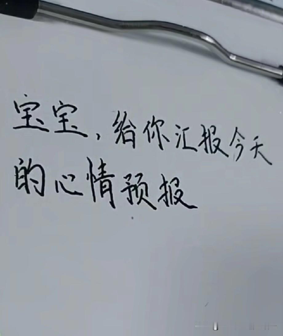 宝宝, 给你汇报今天的心情预报, 今天早上睁开眼起来有点想你, 中午就变成特别特别想你, 到了晚上直接升级超级想你, 预计此类心情, 将持续见到你为止。 我好希望往后的日子, 你能一直好好待在我身边, 不许乱跑, 不准放手, 我会用尽全力好好爱你, 也盼着你能好好爱我。 我们一起慢慢把日子过好, 手牵手, 一起慢慢变老, 好不好?