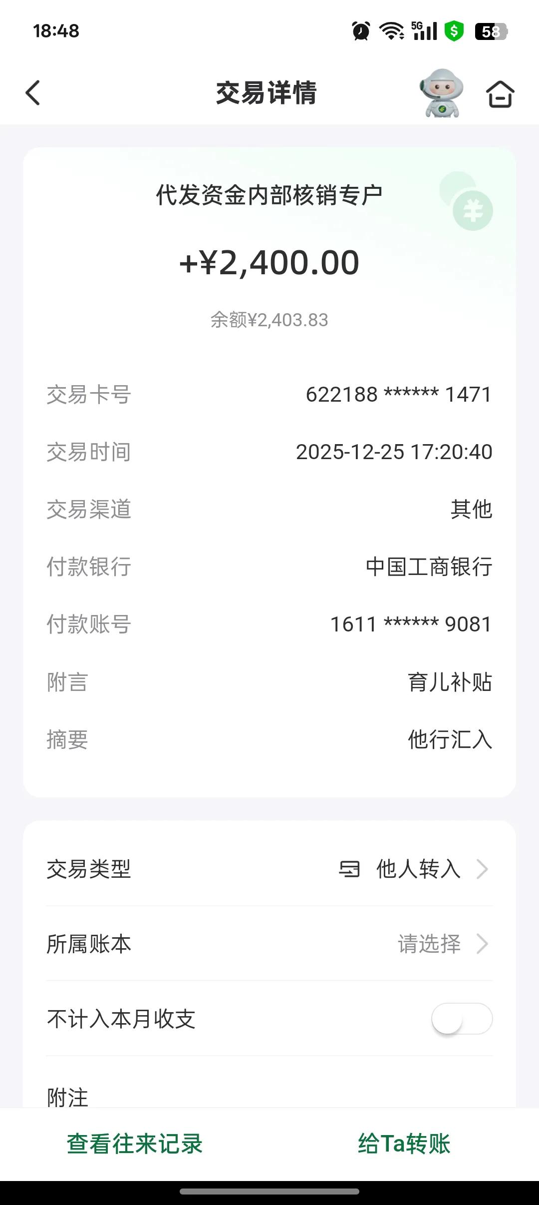 育儿补贴2400元到账 感谢国家的利民好政策 虽然不多,但是苍蝇肉也是肉呀[捂脸] 又可以给孩子买吃买喝 又可以跟随国家政策促进消费了 哈哈 今天是好日子呀 心想的事儿都能成 真呀真高兴 大家的育儿补贴到账了没?
