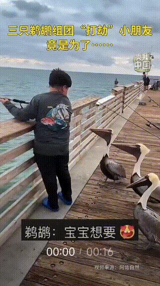 笑不活了!男孩和父亲一起在码头钓鱼,等了好半天鱼竿好不容易晃动有鱼上钩,结果下一秒却不敢将鱼提起来!男孩后面三只鹈鹕眼巴巴的等在男孩身后准备“打劫”。 男孩回头看看鹈鹕,又低头瞅了瞅已经提出水面的鱼,一脸的纠结。 给吧,这可是自己等了半天的战利品,不给吧,这三只鹈鹕的眼神实在太有压迫感了! 更要命的是,真要给的话,到底该给左边这只,还是中间这只,还是右边那只啊? 男孩的小表情,简直把“我太难了”写在了脸上!