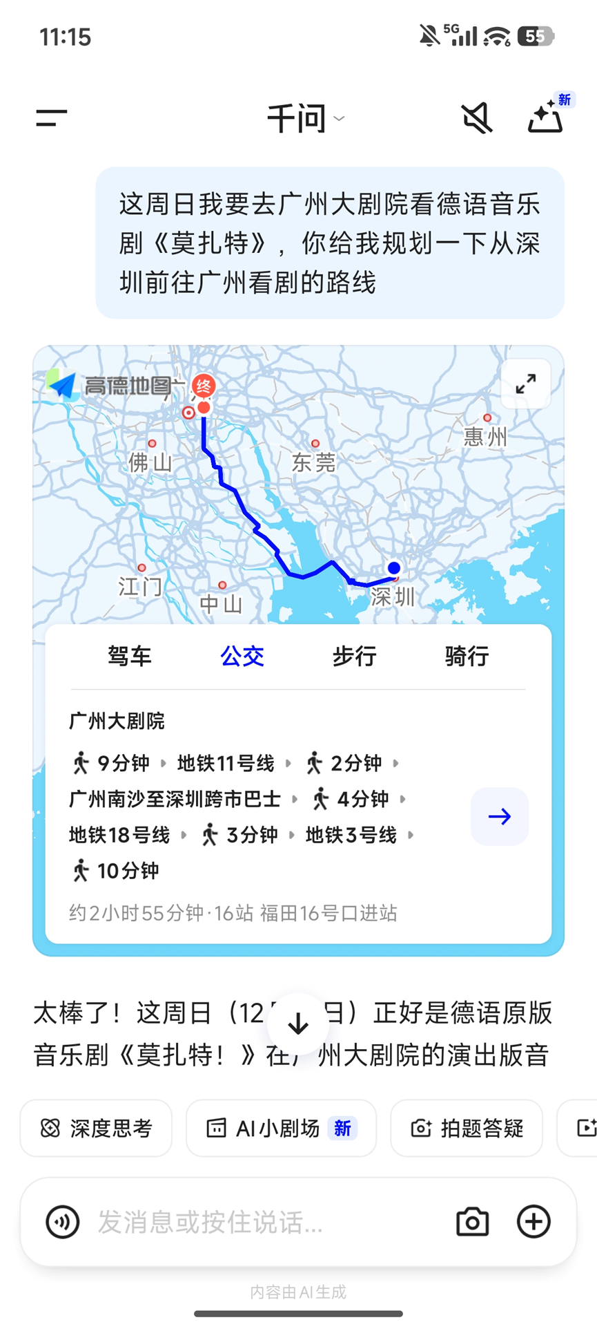 就在前几天,千问APP正式接入高德,这是千问首次尝试接入阿里生态。千问与高德打通之后,可以调用高德的实时数据和真实信息,为用户制定出行方案、推荐周边餐厅等。比方说,用户要求千问制定出行计划,千问就会给出一张高德的卡片,用户点击卡片之后,可以直接跳转到高德进行导航和打车。