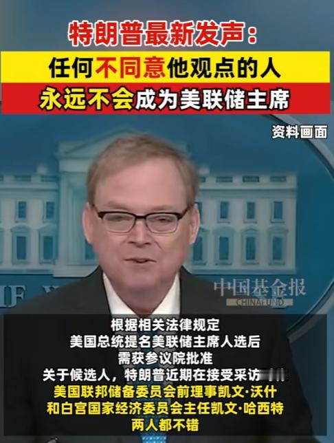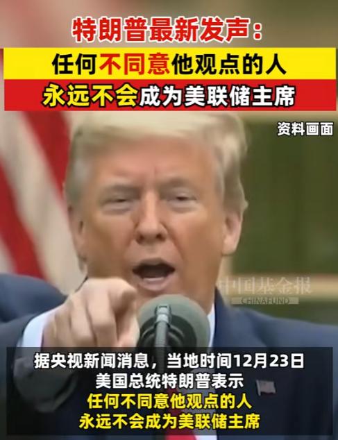 据央视新闻消息,当地时间12月23日美国总统特朗普表示任何不同意他观点的人永远不会成为美联储主席   特朗普又给美联储“划红线”了,当地时间12月23日,这位美国总统公开表态,任何不同意他观点的人,永远都别想坐上美联储主席的位置,这话一出来,立马引发了外界对美国货币政策走向的热议。   然而现任美联储主席鲍威尔的任期要到明年5月才结束,现在正是特朗普物色下任人选的关键时候,他之前在采访里也透露出过心仪人选,前美联储理事凯文·沃什和白宫国家经济委员会主任凯文·哈西特都在他的考虑范围内。   而特朗普这次明说的“观点”,核心其实就是降息——他希望下一任美联储主席能在市场表现良好的时候主动降利率,而不是“无缘无故”破坏市场稳定。   了解特朗普的人都知道,他对美联储的降息诉求可不是一天两天了,自打重返白宫,他就没少跟美联储掰扯利率问题,多次公开批评鲍威尔,觉得美联储降息动作太慢,甚至之前还威胁过要把鲍威尔免职。   但按照美国法律,美联储主席这类职位只有出现玩忽职守、渎职这类“因故”情况才能被罢免,不是总统想免就能免的,所以鲍威尔一直没理他这茬,还反复强调美联储货币政策的独立性。   这么说吧,特朗普这次把“同意观点”当成美联储主席的准入门槛,本质上就是想把美联储的人事任免和自己的政策诉求绑在一起。   毕竟他一直主张大幅降息,背后是实实在在的利益考量,美国现在的国债已经超过37.7万亿美元,每降息一个百分点,联邦政府每年就能少付近4000亿美元的债务利息。   而且他之前加征的关税让美国制造业成本上升,降息也能帮着缓解这部分压力,还能给股市注入流动性,稳住资本市场的表现。   但这里面的风险也很明显,美联储之所以能成为全球最有影响力的央行之一,核心就在于它的独立性,政策制定本该基于经济数据和专业分析,而不是总统的个人意志。   如果真让“听话”的人执掌美联储,货币政策跟着政治诉求走,之前努力控制的通胀可能会反弹,毕竟上世纪70年代尼克松施压美联储降息引发恶性通胀的前车之鉴还在。   更不用说,美国的货币政策变动会影响全球金融稳定,美元汇率波动、新兴市场资本流动都会跟着受波及。   现在距离鲍威尔任期结束还有几个月,特朗普这番表态更像是提前定调,给美联储和潜在候选人施压。   至于最后能不能如愿,还得看参议院的批准,毕竟按照流程,总统提名后必须过参议院这一关。   但不管结果如何,这种把政治意志强加给独立金融机构的做法,已经让外界对美国货币政策的公信力打上了问号。   以上都是个人观点,对此您有什么不同的看法,可以在评论区留言讨论!!!
