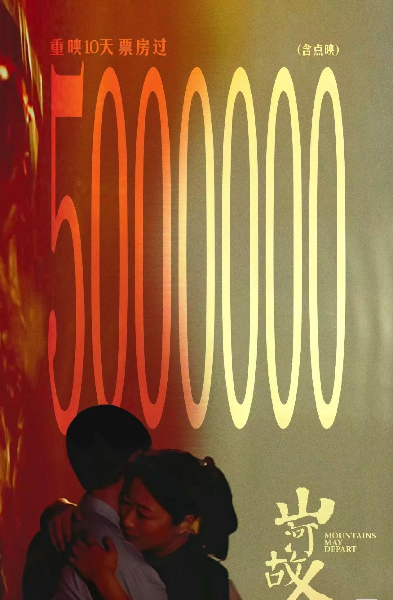 《山河故人》十年之后重映票房破500万。 好电影是经得起时间考验的,贾科长的《山河故人》无疑就是这样一部电影,十年后重映,照进影片中设定的未来的2025年,十年前十年后观看,早已不是当年心境,更多一分对生活的感悟。 此次重映票房超过500万,我去看的那场上座率也很高,票房还会持续高企,愿好电影都有好票房。