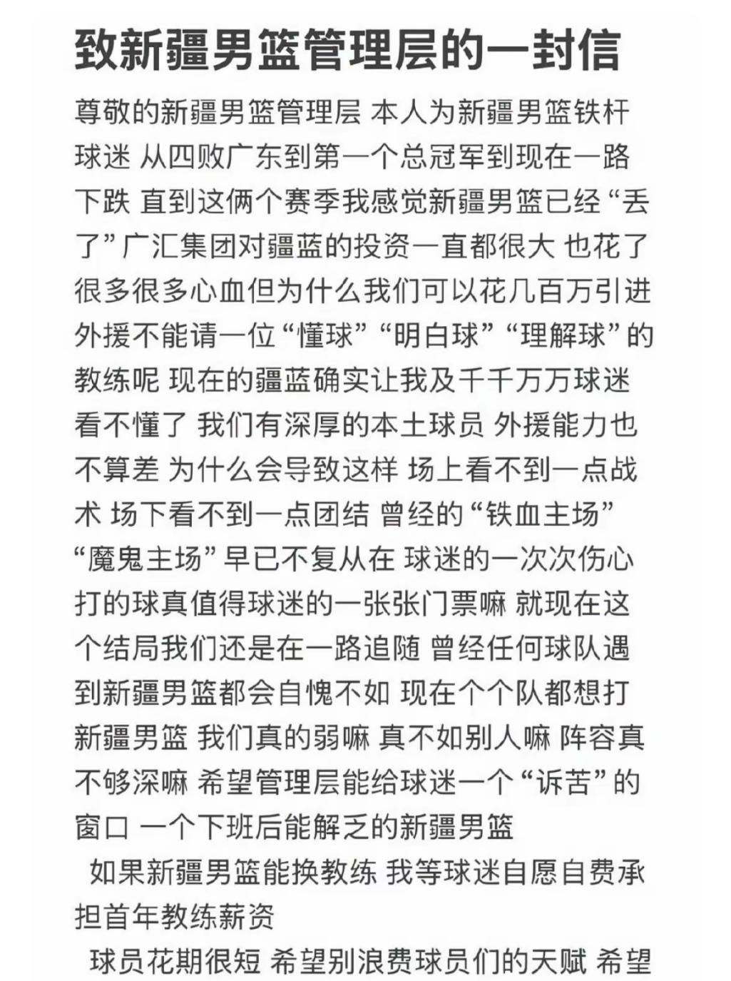 那个曾经头顶“最会给姚明传球”的男人刘炜遭遇了担任教练员以来的非常尴尬的窘境,CBA五轮比赛打完新疆男篮两胜三负,排名联盟第十二,特别是上一轮主场不敌青岛男篮,也彻底点燃了新疆球迷的怒火。新疆男篮球迷居然致信新疆俱乐部管理层要求换掉刘炜,并且声称愿意承担新换教练第一年的薪水,由此可见新疆球迷已经岀离了愤怒。客观的说刘炜的水平确实难以恭维,他只会球迷会的 教练该会的一样不会。