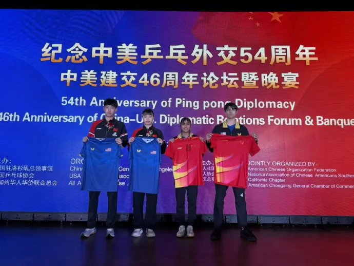 中美乒乓外交54周年郎平现身中美乒乓外交论坛 据消息,当地时间12月22日晚,纪念中美“乒乓外交”54周年论坛暨晚宴在洛杉矶工业市隆重举行。会议现场,美国奥委会国际关系部主任克罗斯兰向中国乒协颁发中美“乒乓外交”贡献奖。中国乒协获贡献奖 中国驻洛杉矶总领事郭少春大使及夫人王薇、国际乒联主席、国际奥委会委员佩特拉·索林、美国乒协首席执行官沈伟妮、中国驻洛杉矶副总领事郭志强、原中国排球队女排教练郎平、美国国家乒乓球队教练高军、美国南加州华人华侨联合总会会长蔡成华、美国奥委会国际关系部主任克罗斯兰、加州财务长马世云、加州众议员方树强以及曾参加1971年访华之旅的美国前乒乓球国家队队员戴尔及康妮·斯威里斯夫妇到场出席,美国联邦众议员赵美心发表视频致辞。