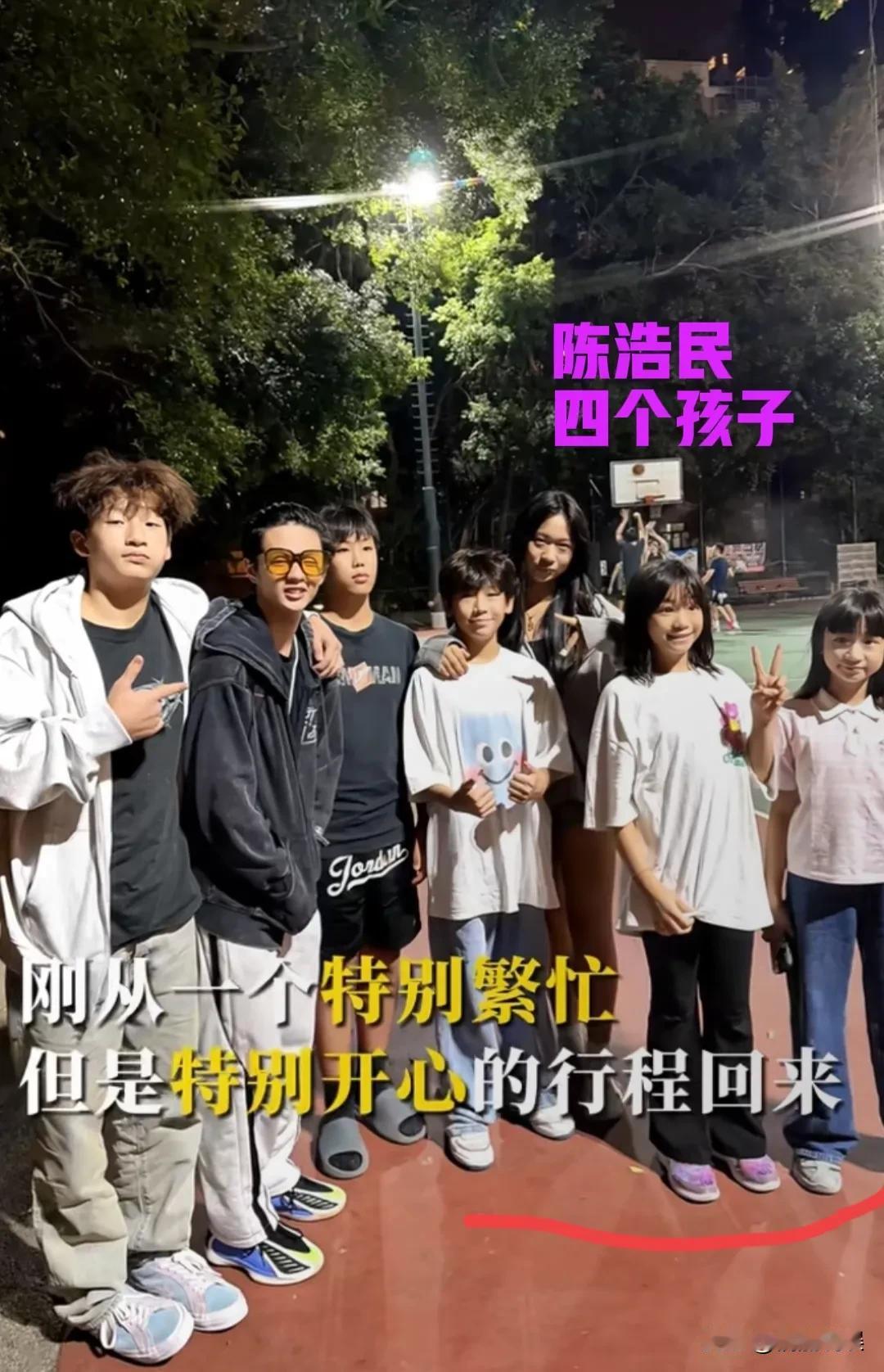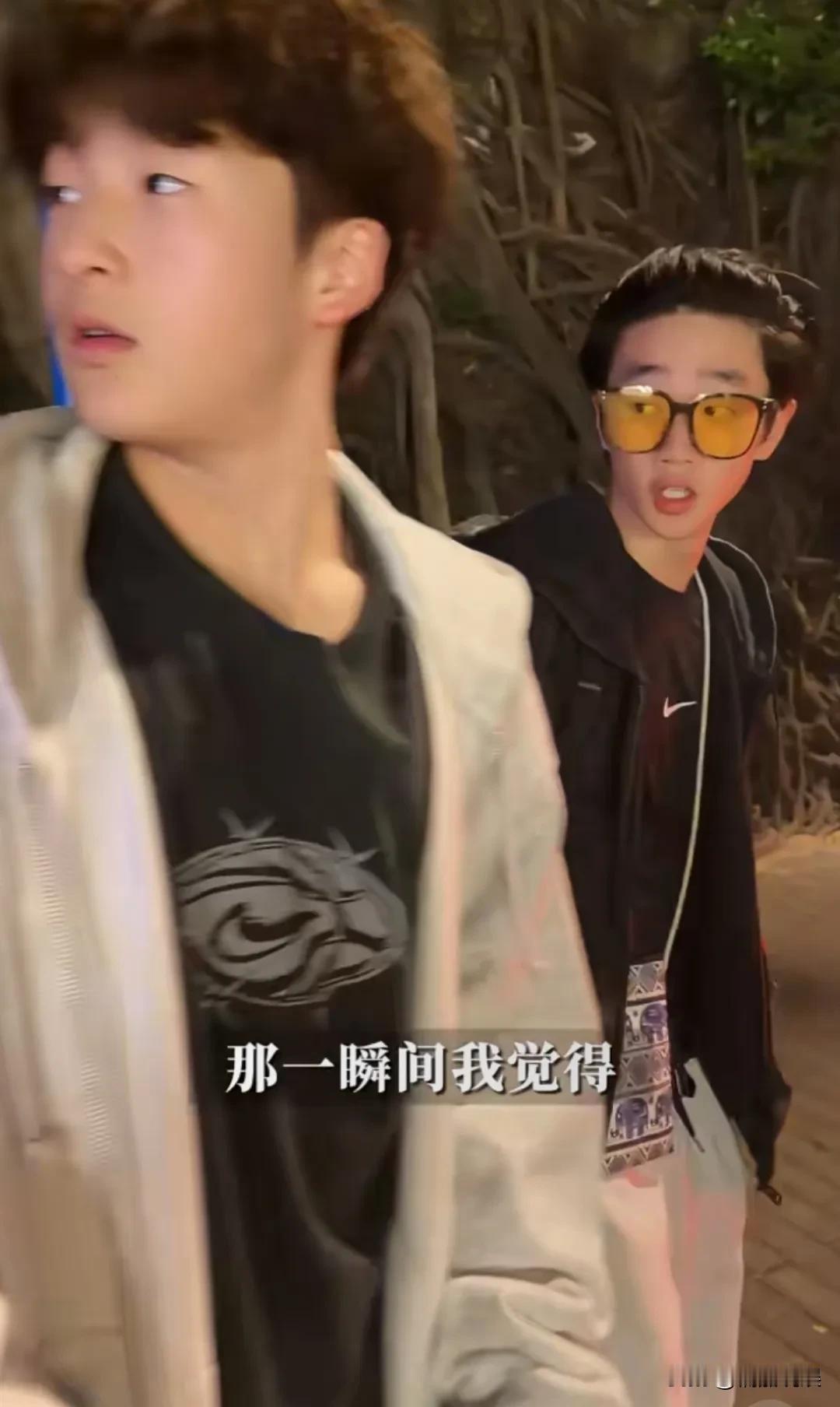 邹市明的大儿子轩轩,去到香港探望自己的好友,奥运冠军杨威的儿子杨阳洋,俩人因综艺《爸爸去哪儿》结缘,从此成了好友。 轩轩是一个开朗活泼的孩子,个子高大,个头很壮;杨阳洋倒是有点有点腼腆,而且很瘦,脸特别小,头发挺长的,像个“忧郁”少年。 俩少年一见面,就开心的聊了起来,看得出来,对于好友的探望,杨阳洋很感动。 轩轩去香港探望杨阳洋,还约了陈浩民家里的四个孩子出来玩。陈浩民家的孩子都长大了,但是感觉都没有爸爸年轻时帅,不怎么像妈妈,也不怎么像爸爸。[捂脸]