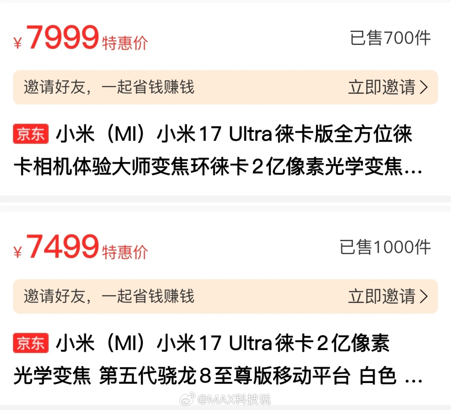 小米17 Ultra首发京东销量情况:京东标准版:1000+徕卡版:700+(缺货)天猫标准版:400+徕卡版:800+没货