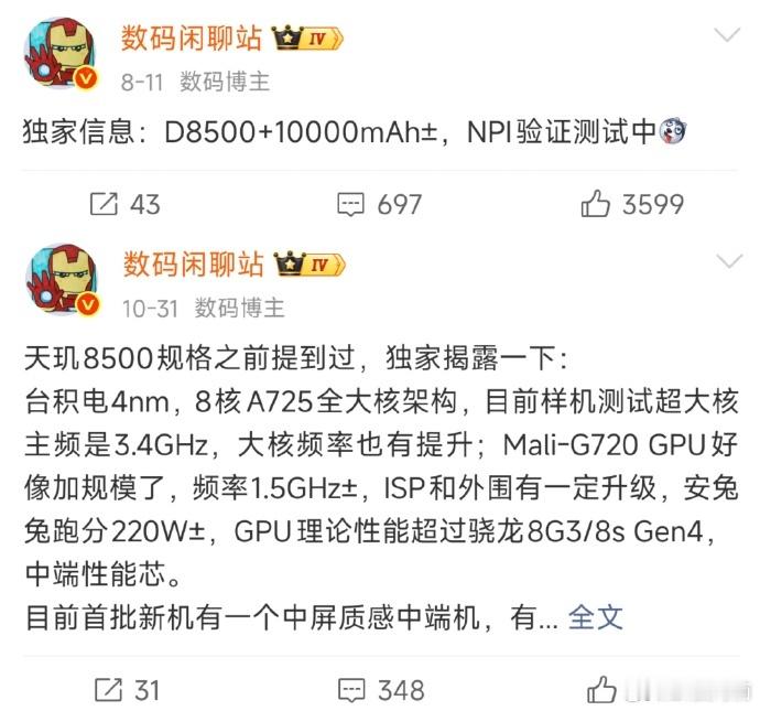 如果天玑9400或9500可以考虑,8500还是算了吧,没超大核上限也低了很多。