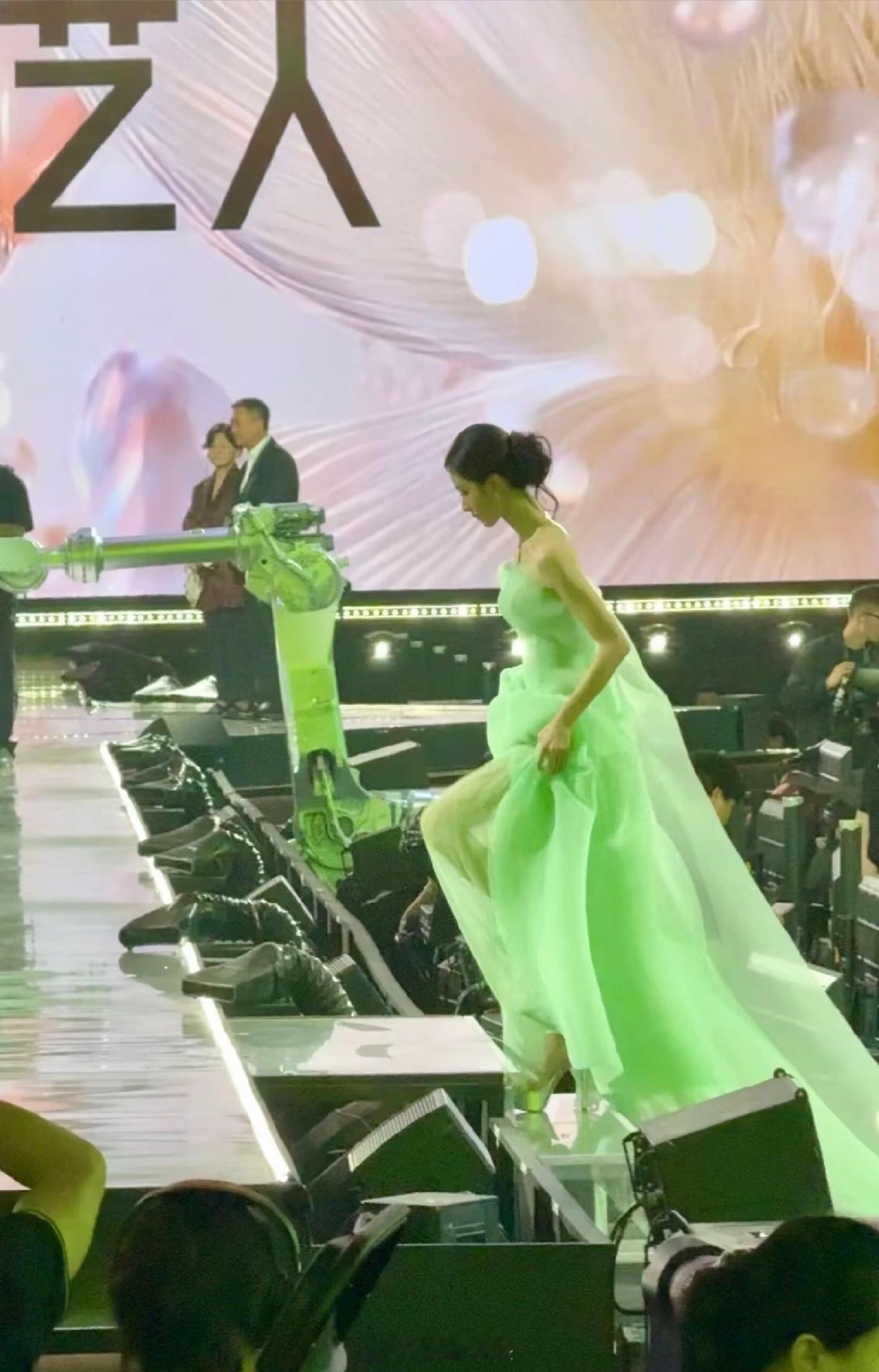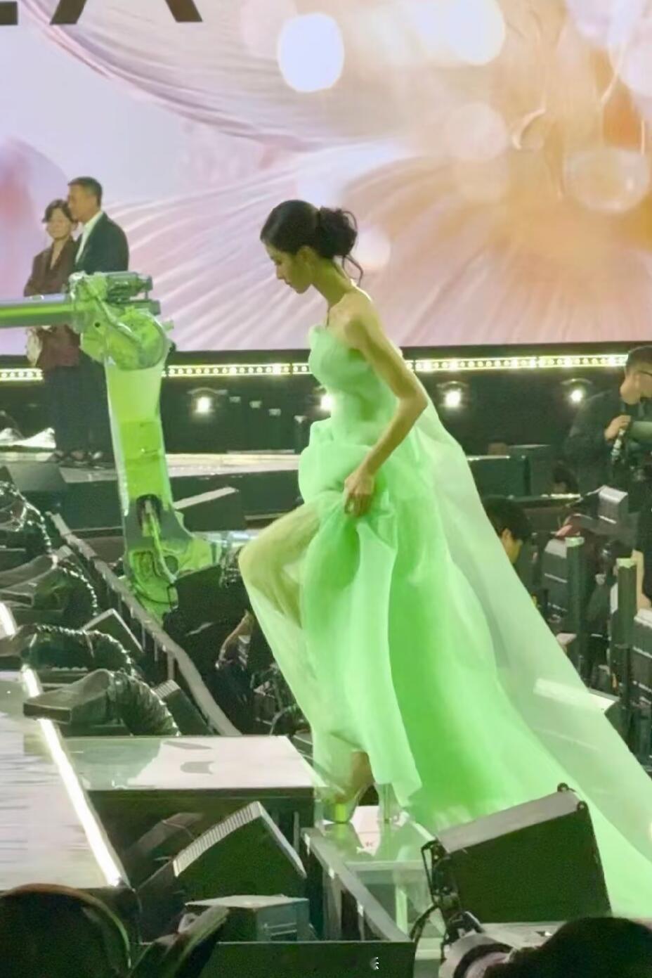我老天,童瑶这裙子穿的简直了。整个上半身都露在外面,裙子穿的要垮要垮的,真替她捏