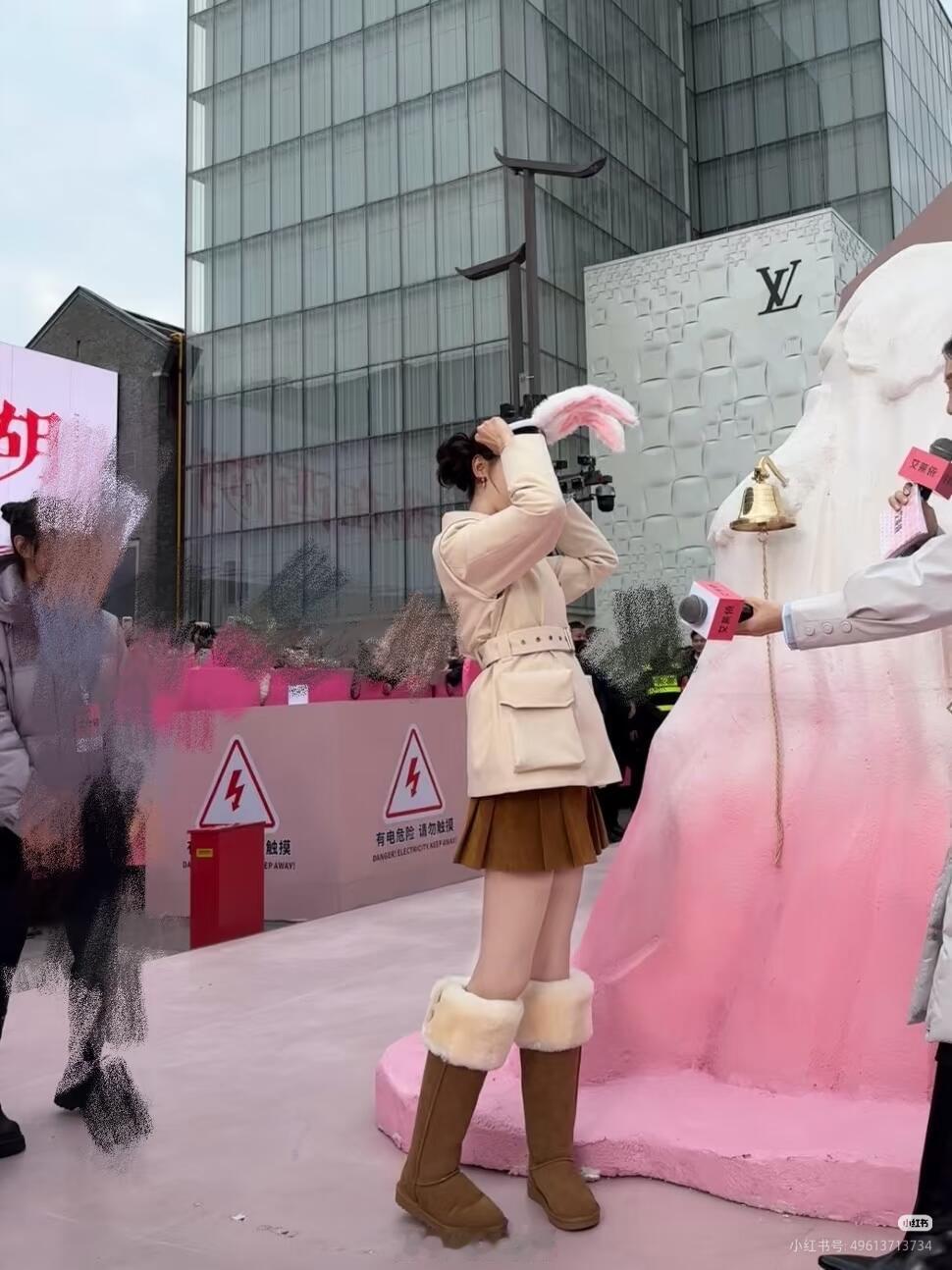 吴艳妮在成都穿着短裤大腿看起来很粗壮,表情自信又张扬