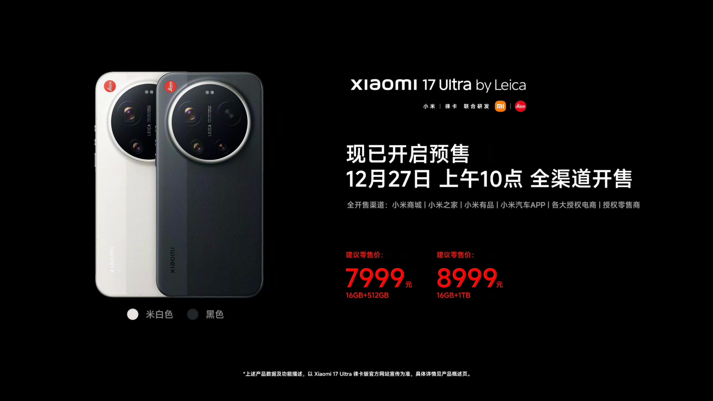 小米17Ultra徕卡版起售价7999元,刚好比同内存的15Ultra贵1000手持黑银双拼15U,毫无换机欲望小米发布会