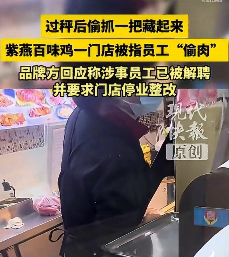 紫燕百味鸡涉嫌偷肉门店暂停营业紫燕百味鸡门店“称重后偷肉”的视频触目惊心,店员熟练的隐蔽动作,绝非偶然失误,更暴露了管理漏洞。品牌虽迅速回应,解聘员工并停业整改,但网友集中吐槽的“价高量少”“类似遭遇”,说明问题可能并非个例。诚信是餐饮行业的底线,足斤足两本是基本要求,而徒手偷拿还存在卫生隐患。道歉与补偿能解一时之困,唯有建立透明化操作规范、强化全流程监管,才能真正重建消费者信任,避免信任崩塌。