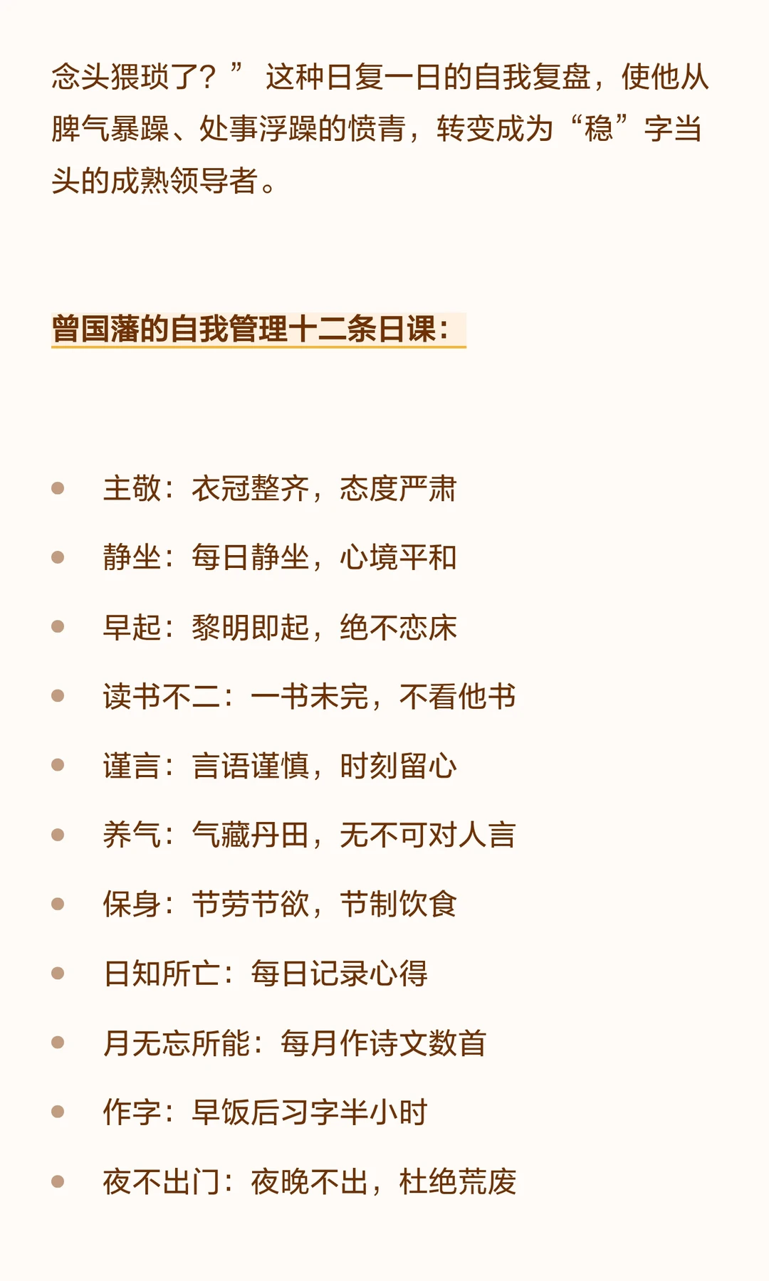 他通过自我反省、静坐、用人之道和复盘精神,成功改变命运,成为家族十代人才的典范。