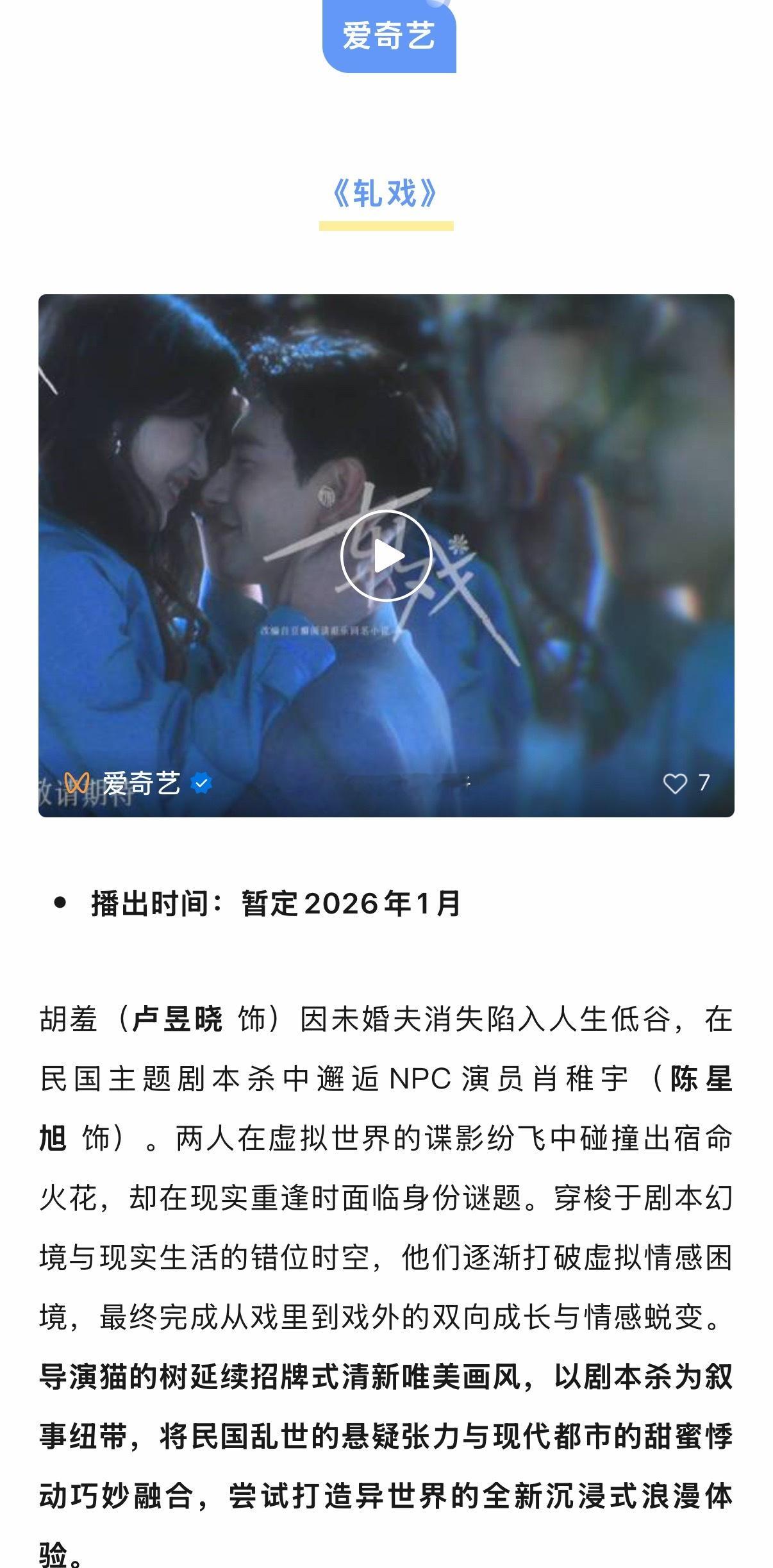 陈星旭卢昱晓轧戏最新招商,播出时间:暂定2026年1月