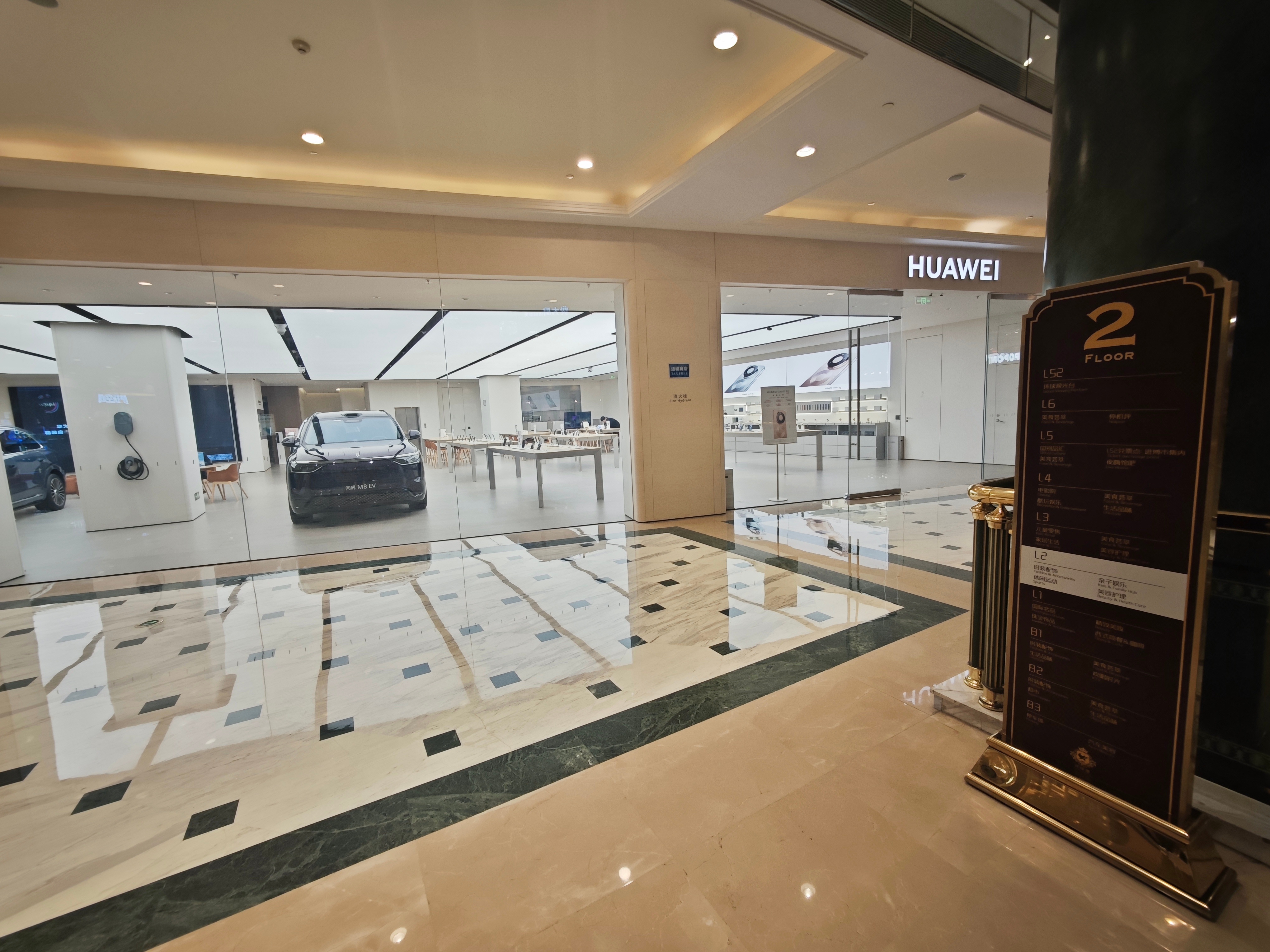 刚刚在上海环球港商场,看到2楼华为门店里,有几辆问界M8汽车,你猜猜这么大的车是怎么运到2楼来的? 上海