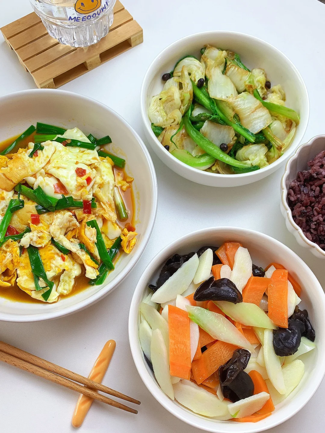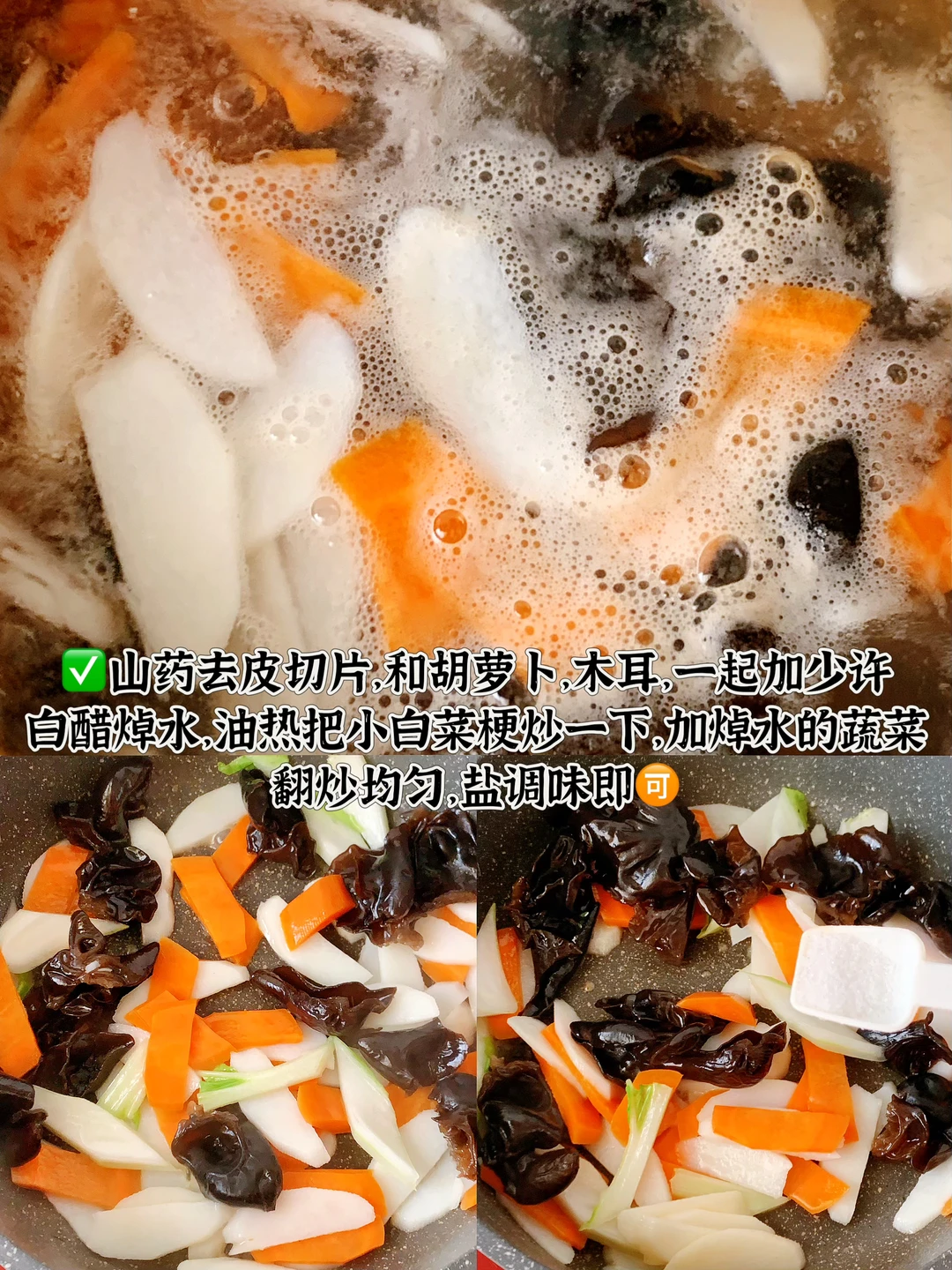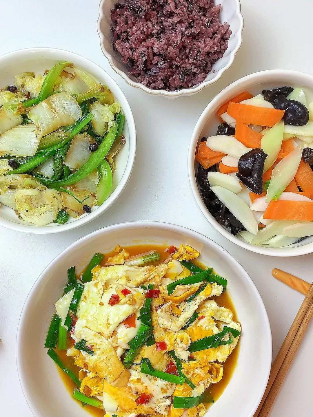 👩🏻🍳分享今日菜单 1️⃣木耳胡萝卜🥕炒山药 2️⃣豆豉白菜心炒油麦菜🥬 3️⃣醋炒鸡蛋 主食:米饭🍚 ……………………………………………………………………………… 🛒食材清单: 鸡蛋 | 白菜心 | 油麦菜 | 胡萝卜🥕 | 山药 | 木耳 📝早八打工人的一日三餐,拒绝外卖[害羞R],坚持做饭的又一天,[偷笑R]翻空冰箱的一天,今日主打一个有啥吃啥,吃自己做的简单干净的饭菜~ ₍˄·͈༝·͈˄*₎◞ ̑̑