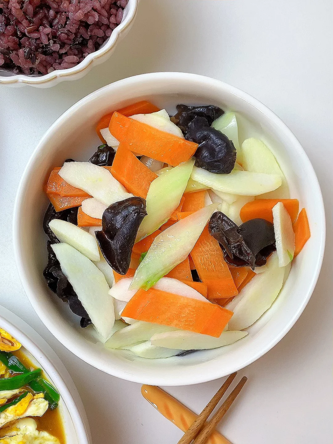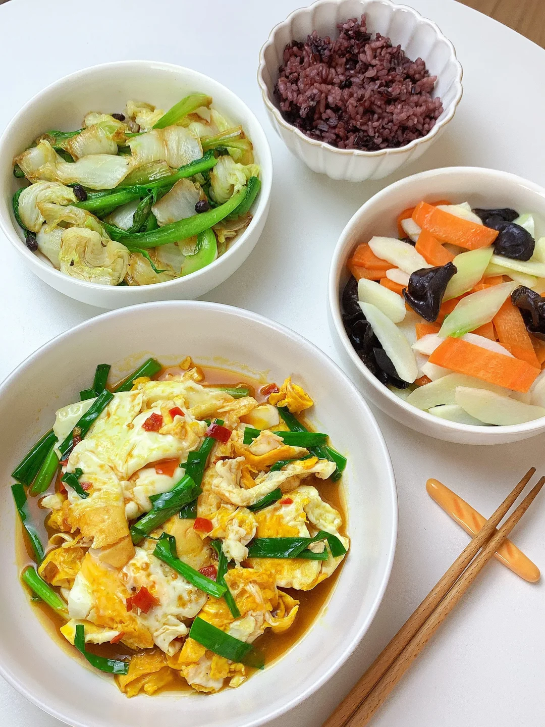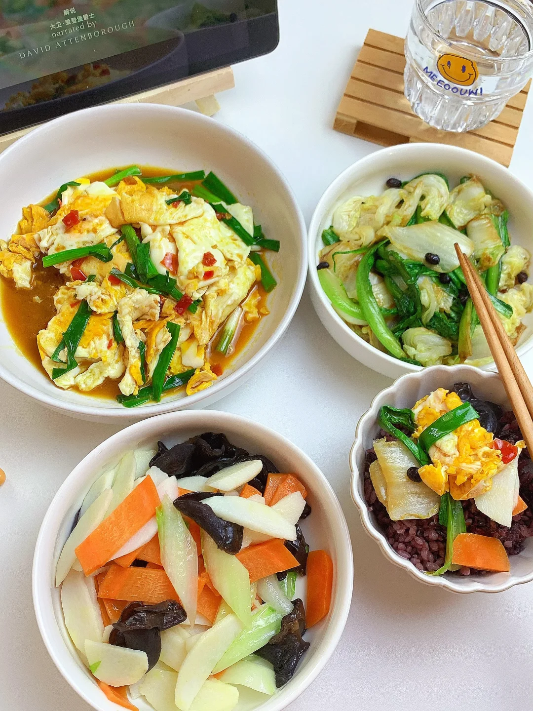 👩🏻🍳分享今日菜单 1️⃣木耳胡萝卜🥕炒山药 2️⃣豆豉白菜心炒油麦菜🥬 3️⃣醋炒鸡蛋 主食:米饭🍚 ……………………………………………………………………………… 🛒食材清单: 鸡蛋 | 白菜心 | 油麦菜 | 胡萝卜🥕 | 山药 | 木耳 📝早八打工人的一日三餐,拒绝外卖[害羞R],坚持做饭的又一天,[偷笑R]翻空冰箱的一天,今日主打一个有啥吃啥,吃自己做的简单干净的饭菜~ ₍˄·͈༝·͈˄*₎◞ ̑̑