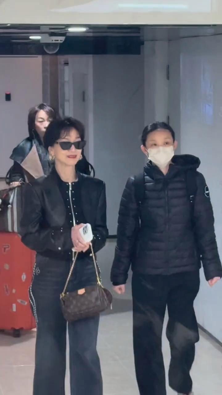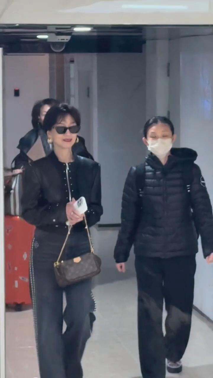 72岁赵雅芝在上海被偶遇,她穿着黑色皮衣牛仔裤,戴着墨镜像50岁,法拉利老了还是