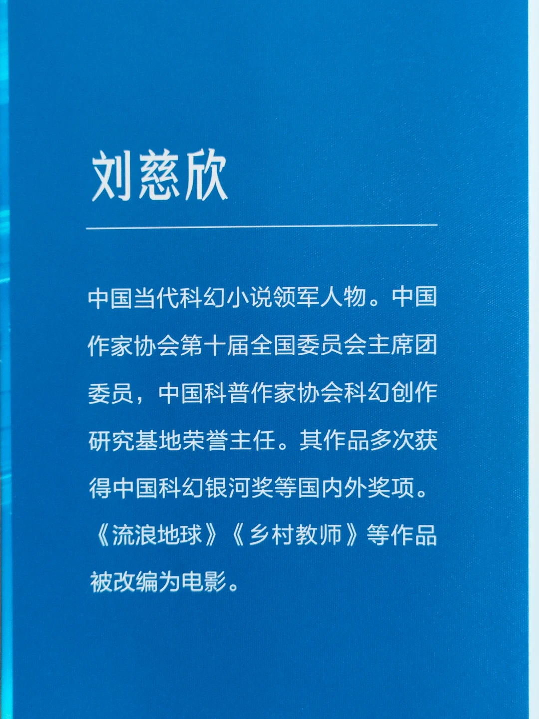 ✔“刘慈欣的作品,以宏大绚烂的想象为翅膀,飞越数千上亿年的时光,落脚于对人类现实问题的思考和深切关怀,带领读者体会科幻的魅力和独特的浪漫。”