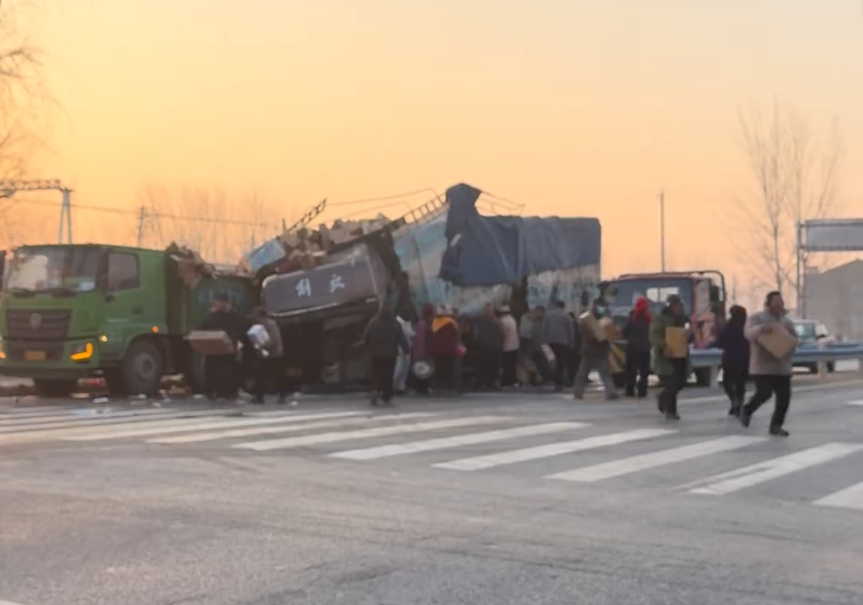 河南周口一车祸现场货物遭人哄抢,货主嘶喊“别抢了”,110指挥中心:具...