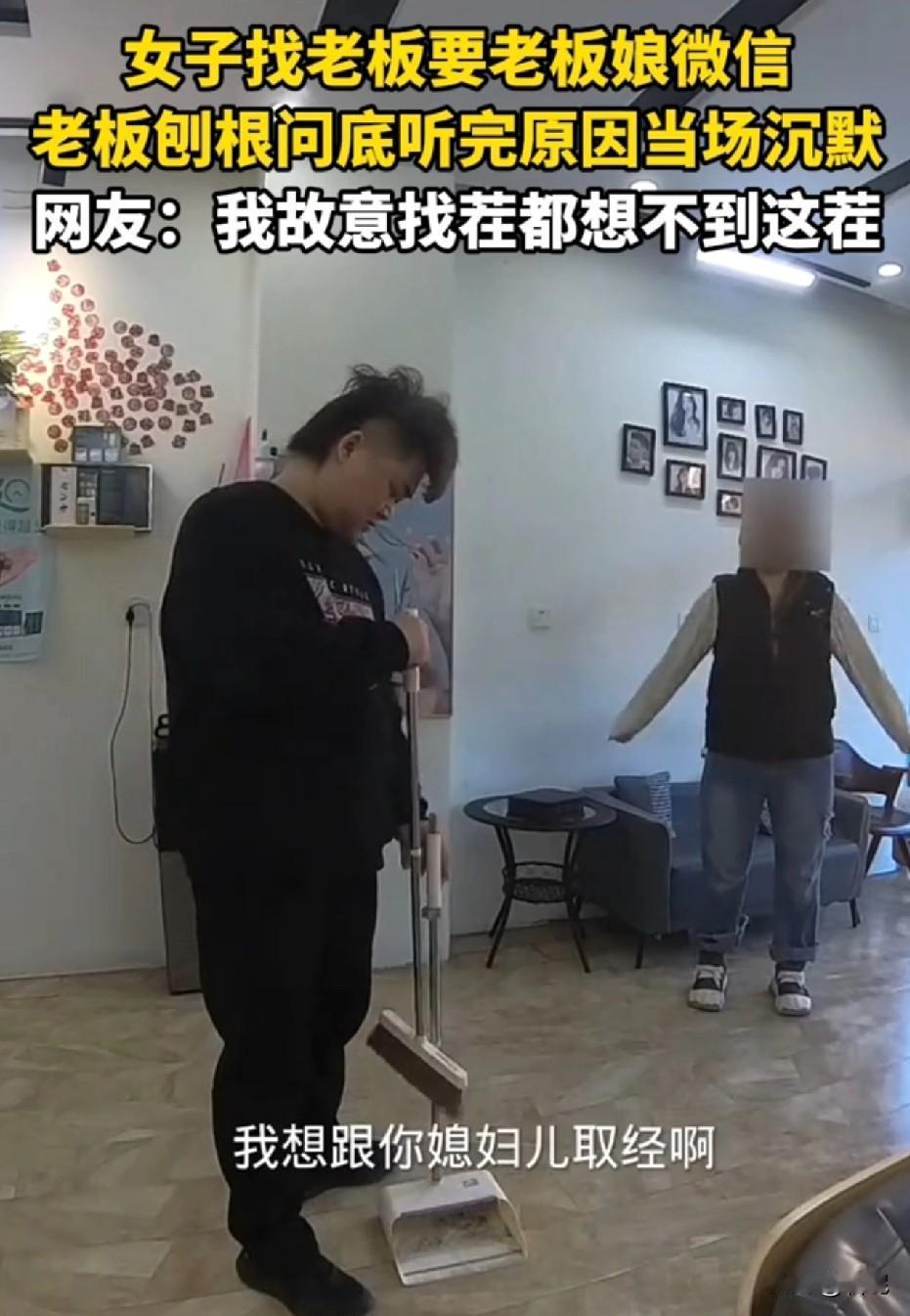 河北一女子进店不剪头找老板要老板娘微信,老板刨根问底听完原因,当场沉默。 老板想了无数种可能性,却没想到是这样,真是“伤害性不大,侮辱性极强!” “那我这最近我不是处了个对象吗,我想跟你媳妇儿取经啊。” “你跟她取什么经啊?” “我相中这个对象挺丑的,你知道吧,我就想跟她取取经。我看你也挺丑的,我想问问他,是怎么跟你过了那么些个年的,怎么下得去手?” 女子话音刚落,老板眼神上下打量女子,一言不发,感觉老板有一股想呼她一巴掌的冲动。 骂人不带脏字,却句句诛心,女子不仅仅想伤害老板,更想侮辱老板!很想知道女子是怎么走出理发店的。 不过,看老板这身材,这发型,女子问出了我的心声,我也挺好奇,老板娘是怎么下得去手的?