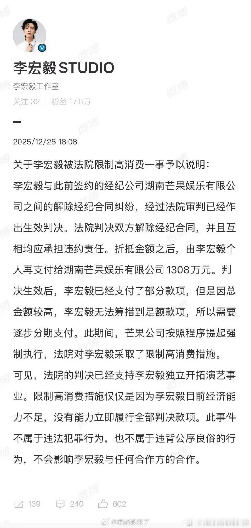 李宏毅限高涉案金额1118万李宏毅工作室回应限高被芒果起诉后需支付1308万元目前已支付部分款项因总金额较高,分期付款,解约都要被扒一层皮啊李宏毅限高涉案金额1118万