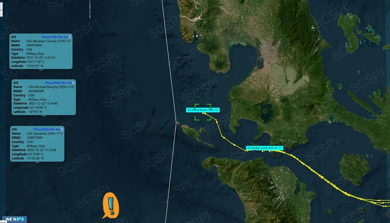 美军林肯号航母打击群进入南海 12月25日,美海军“林肯”号航母及其航母打击群成员 “斯普鲁恩斯”号和“迈克尔·墨菲”号驱逐舰经圣贝纳迪诺海峡-佛得岛水道驶入南海。 “林肯”号航母于12月12日抵达关岛,短暂停靠后进入菲律宾海活动。 圣诞的南海,一点都不太平。美军这几艘军舰开进来,根本不是什么自由巡航。就是明摆着的秀肌肉,心里的算盘,写在脸上。 林肯号的路线,掐点掐得太准了。刚在关岛补完油歇够了,转头就扎进南海。这阵子仙宾礁那边刚有过摩擦,美军这趟过来,就是给菲律宾撑腰,谁都看得透。 美军干这事,早就成了老套路。2024年一整年,美军三艘主力航母,八次往南海闯。每次都挑边缘的水道走,来得快,走得也快。看着阵仗大,其实就是过来刷个存在感。 所谓的航行自由,就是美军的一块遮羞布。南海这么多年的安稳,从来不是靠美军维护的。他们每来一次,这片海就多一分紧张,周边国家就多一分顾虑。 就拿上个月来说,美军的里根号航母刚在南海晃完,转头林肯号就接上了。轮番上阵的架势,无非就是想让周边国家看到他们的存在感,想拿捏这片海域的局势。 美军的心思,不止是针对南海。一边给菲律宾递话撑腰,一边又和日本勾连军演。把南海当成自己的棋盘,把周边国家当棋子,完全不管这片海域的安稳,不管沿岸国家的想法。 解放军从来没惯着美军的这套把戏。美军军舰敢闯一次,解放军的舰艇和战机就跟监一次,驱离一次。南部战区次次都亮明态度,我们的家门口,容不得外人撒野。红线就在那摆着,一点都不含糊。 南海的主权,从来都是我们自己的。有历史摆在这,有法理撑着腰。美军开着航母过来耀武扬威,说到底就是一场没人看的闹剧,折腾半天,啥用都没有。 现在的亚太,早就不是美军能说了算的。没有哪个国家愿意跟着美国选边站队,更没人愿意看着美军把这片海搅得鸡犬不宁。大家要的是安稳,不是对抗。 美军总觉得开着航母过来,就能吓住人。其实恰恰暴露了他们的心虚。怕自己在亚太的话语权越来越弱,怕自己的霸权撑不住了,只能靠秀肌肉给自己壮胆。 南海不是美军的练兵场,更不是他们撒野的地方。敢在这兴风作浪,就必然要面对反制。美军的这些小动作,最终只会落得个里外不是人的下场。 各位读者你们怎么看?欢迎在评论区讨论。