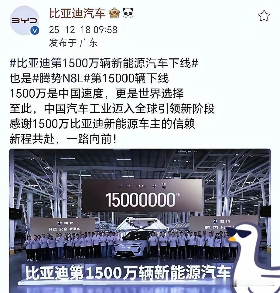 比亚迪全球突进,中国重塑全球汽车工业体系 比亚迪第1500万辆新能源汽车下线!今年460万的销量已经稳了! 比亚迪交出一份让全球车企震颤的成绩单:11 月比亚迪单月出口狂飙至12.8 万辆,同比暴增313.4%,相当于每天4267 台比亚迪驶出国门! 前11个月累计出口87.8 万辆,超去年全年2.4 倍,增速吊打所有跨国车企。 2026年,预测比亚迪将完成海外销量140万辆。“出口增速王”比亚迪,让世界见识什么叫“中国速度”! 比亚迪的全球突进已不仅是速度的展示,更是“中国模式”对全球汽车工业体系的一次成功重塑。 你会买比亚迪吗 小米是否值得信赖 比亚迪全地形赛车场开业 比亚迪 你愿意购买比亚迪车辆吗? 是否选择比亚迪 聊聊比亚迪新车