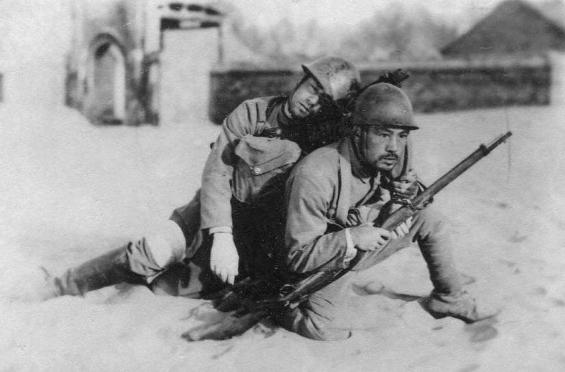 抗战期间,日寇手持38式步枪(即三八大盖)真实历史留影! 日寇步兵广泛装备的3