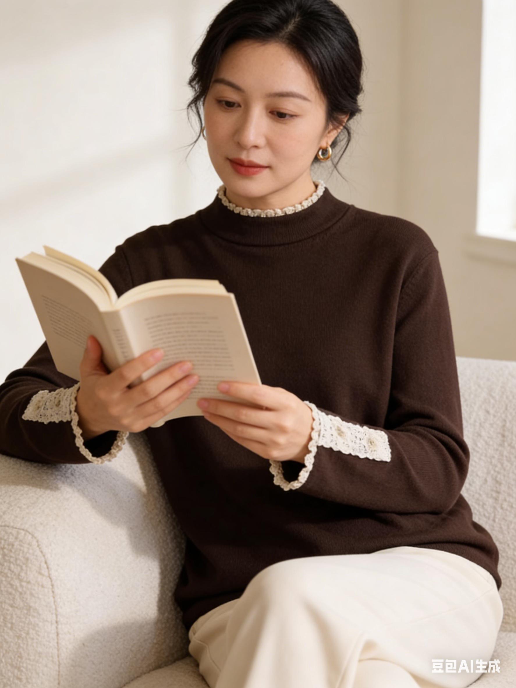 秋冬德绒花边领洋气百搭长袖保暖打底衫!