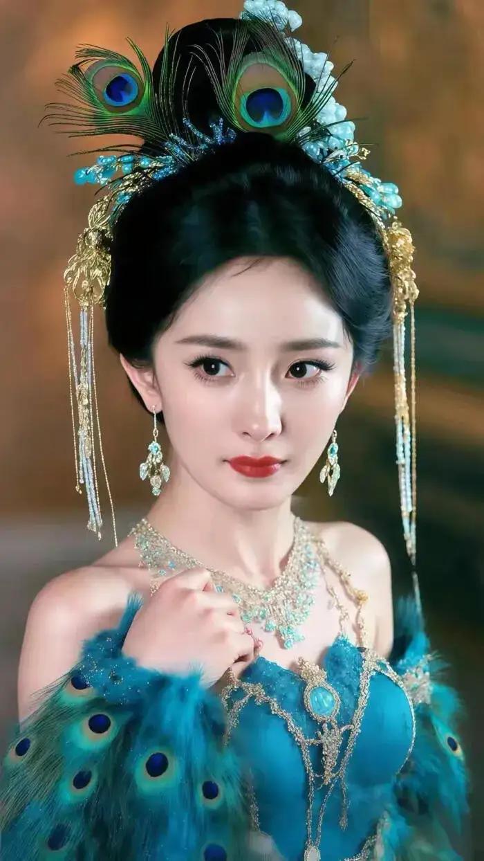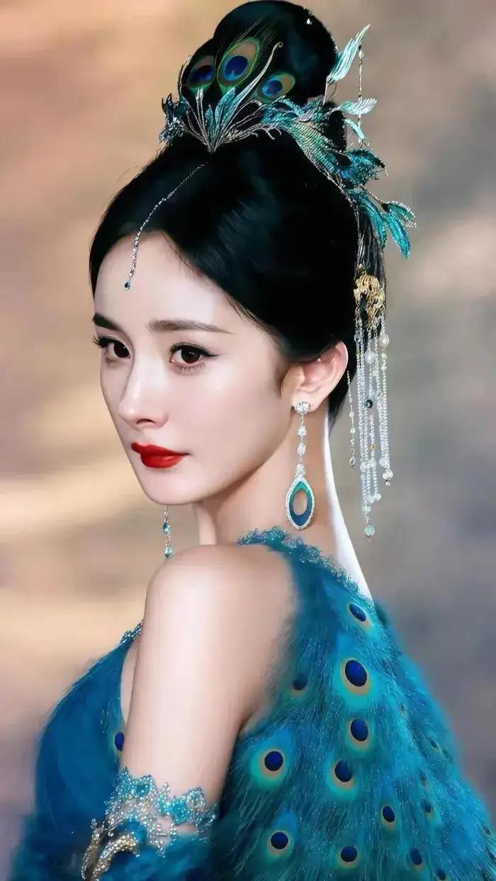 杨幂这是又要拍什么剧了吗?这孔雀造型太美了吧。