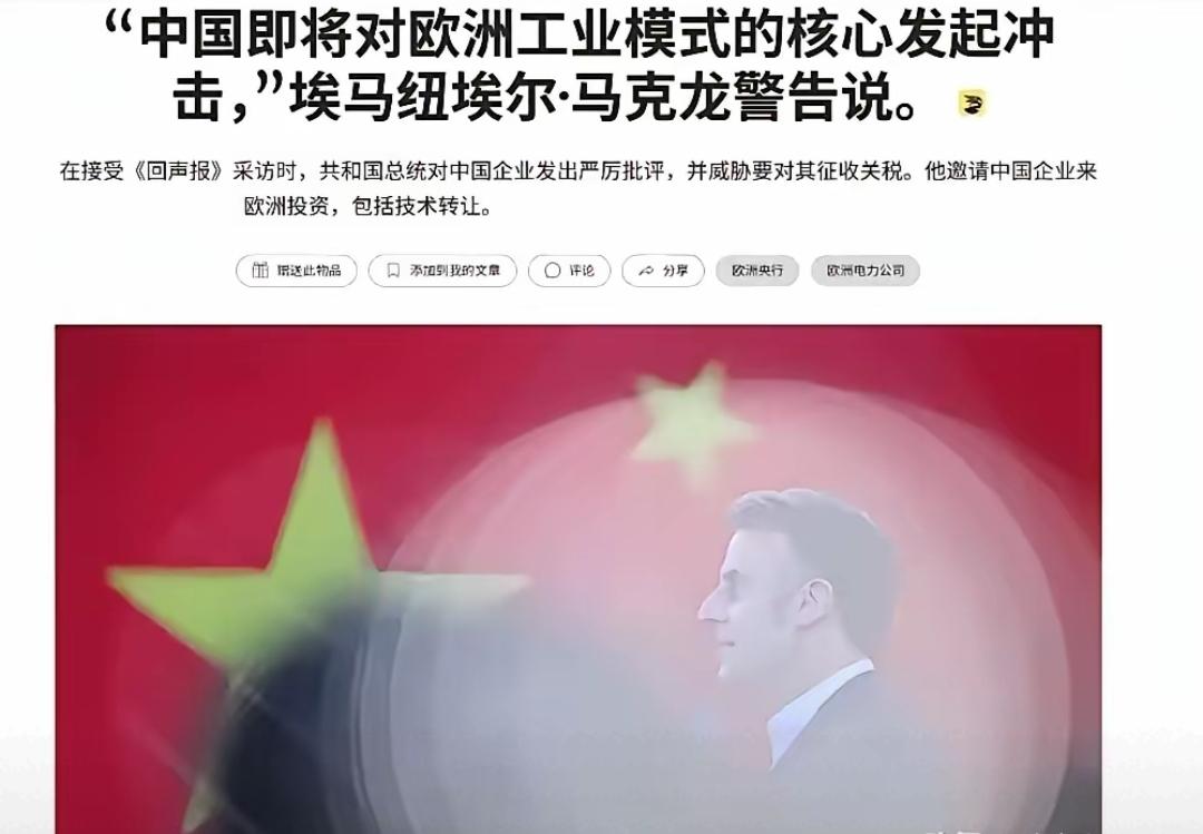 马克龙硬刚中国! 事态发展愈来愈表明,法国不再是历史上具有独立意识的法国,马克龙更不再是具有大视野大格局的法国领导人。 最新的一例就是马克龙刚从中国返回后,再度变色,对中国发出强硬声音。 马克龙这趟访华,表面上是谈合作、叙友谊,还惦记着咱们的大熊猫。可人刚回巴黎,话锋就转了,对着媒体抱怨什么贸易失衡,甚至威胁欧盟可能得对中国商品加征关税。这脸变得,比巴黎的天气还快。难怪有人说,政客的变脸术,真是玩得炉火纯青。 他为什么这么着急?说白了,是自家的日子不好过了。法国企业倒闭数量创了新高,老百姓的日子也紧巴巴的。自己家里的问题解决不了,就把锅往外甩,说是中国出口太多让欧洲吃了亏。可问题真在中国吗?欧洲自己竞争力跟不上,制造业疲软,农业还得靠补贴撑着,这账怎么算也算不到别人头上。马克龙想用对华强硬来转移国内视线,给自己撑撑场面,可这套老把戏,明眼人都看得清楚。 更关键的是,他这套做法,把法国自己给绕进去了。法国是欧盟里跳得最高、推动对中国电动车加税最卖力的那个。结果呢,中国的反制来了,而且打得特别准。先是白兰地、猪肉,现在又轮到了乳制品。要知道,欧盟出口到中国的奶酪,将近四成是法国产的。中国一加征临时反补贴税,最高税率能到42.7%,法国奶农和企业的脸都绿了。这叫啥?搬起石头砸了自己的脚。本想用关税大棒吓唬别人,没想到先挨了一记精准的回马枪。 马克龙一看自家产业疼得直叫唤,又慌了神,赶紧跑去拉拢欧盟,想搞个27国统一战线来对付中国。这想法,听着挺唬人,实际上就是一场镜花水月。欧盟那二十几个国家,心根本就不齐。 德国跟中国产业链绑得那么深,会为了法国的奶酪和猪肉,去砸自家汽车的饭碗吗?中东欧国家还指望中国的投资和中欧班列带来的实惠呢。就连那个被马克龙一手推上位的欧盟委员会主席冯德莱恩,在跟中方通话时,调门也放软了,没再提那些有的没的。想让大家为了法国的事儿一起扛枪?难。 说到底,马克龙这番操作,暴露的不是法国的强大,恰恰是它的焦虑和战略上的短视。嘴里喊着“战略自主”,身体却很诚实地在走保护主义的老路,甚至想拉着整个欧洲一起跳。 他忘了,或者说不愿意承认,全球化走到今天,产业链早就你中有我、我中有你。对抗没有赢家,合作才是唯一的出路。中国把话也说得很明白了,反制是依法依规,是被逼出来的。门一直开着,想谈,可以,但得拿出诚意,停止那种一边砸人家饭碗、一边还想从人家锅里盛饭的双标做法。 这场风波,像一面镜子,照出了欧洲内部的撕裂,也照出了一些领导人面对困局时的仓促与无力。马克龙想扮演一个强硬的领袖,可手里的牌,却越来越不好打了。 未来的路怎么走,是继续在对抗的胡同里钻到底,让法国企业和百姓承受更多损失,还是真正拿出点“战略自主”的魄力,回到对话与合作的桌面上来,考验的恐怕不只是智慧,更是格局。 各位读者你们怎么看?欢迎在评论区讨论。