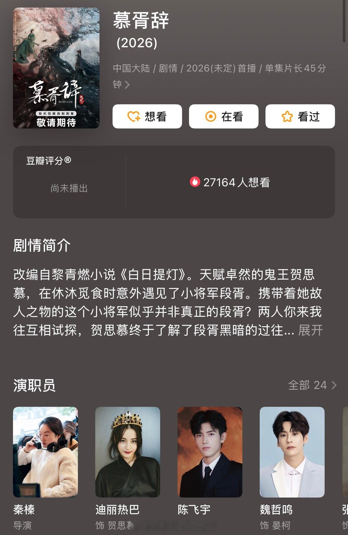 网传迪丽热巴、陈飞宇《慕胥辞》有望在明年5月播出,男女主已经连连扑了,不知道这部