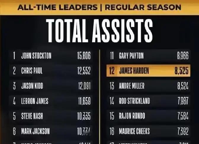 一个得分王,正在用传球雕刻自己的历史地位。 你看哈登的场均得分,16.8分。但你得看他怎么拿的。真实命中率飙到62.1%,生涯最高。他的每次触球,都在为下一秒的传球蓄力。 他场均8.1次助攻,排联盟第四。但数字骗了你。他每场制造12.3次“潜在助攻”,球传出去,队友直接就能攻框。祖巴茨吃他的饼,场均多拿4.1分。 他现在离历史得分助攻双前十,还差1750分和1720次助攻。按现在的节奏,大约再打104场。风险是他34岁了。但过去三年,他出战了85%的比赛。 勒布朗是双榜最顶尖的怪物。而哈登走的是另一条路:先登上得分王宝座,再转身,用控卫的方式打通另一条历史通道。这需要约20个赛季的顶级输出,相当于把马龙的得分和斯托克顿的助攻,浓缩进一个生涯。 所以别再用“下滑”形容他。他不再只是定义得分,他正在重新定义“创造”本身。